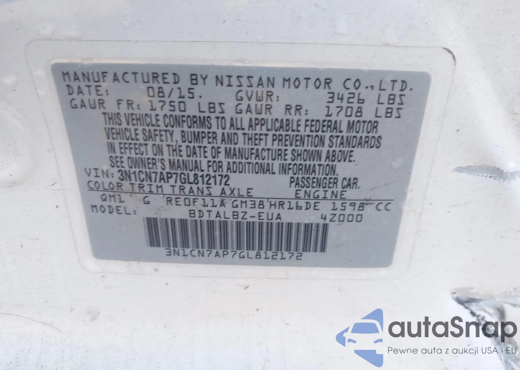 • VIN: 3N1CN7AP7GL812172