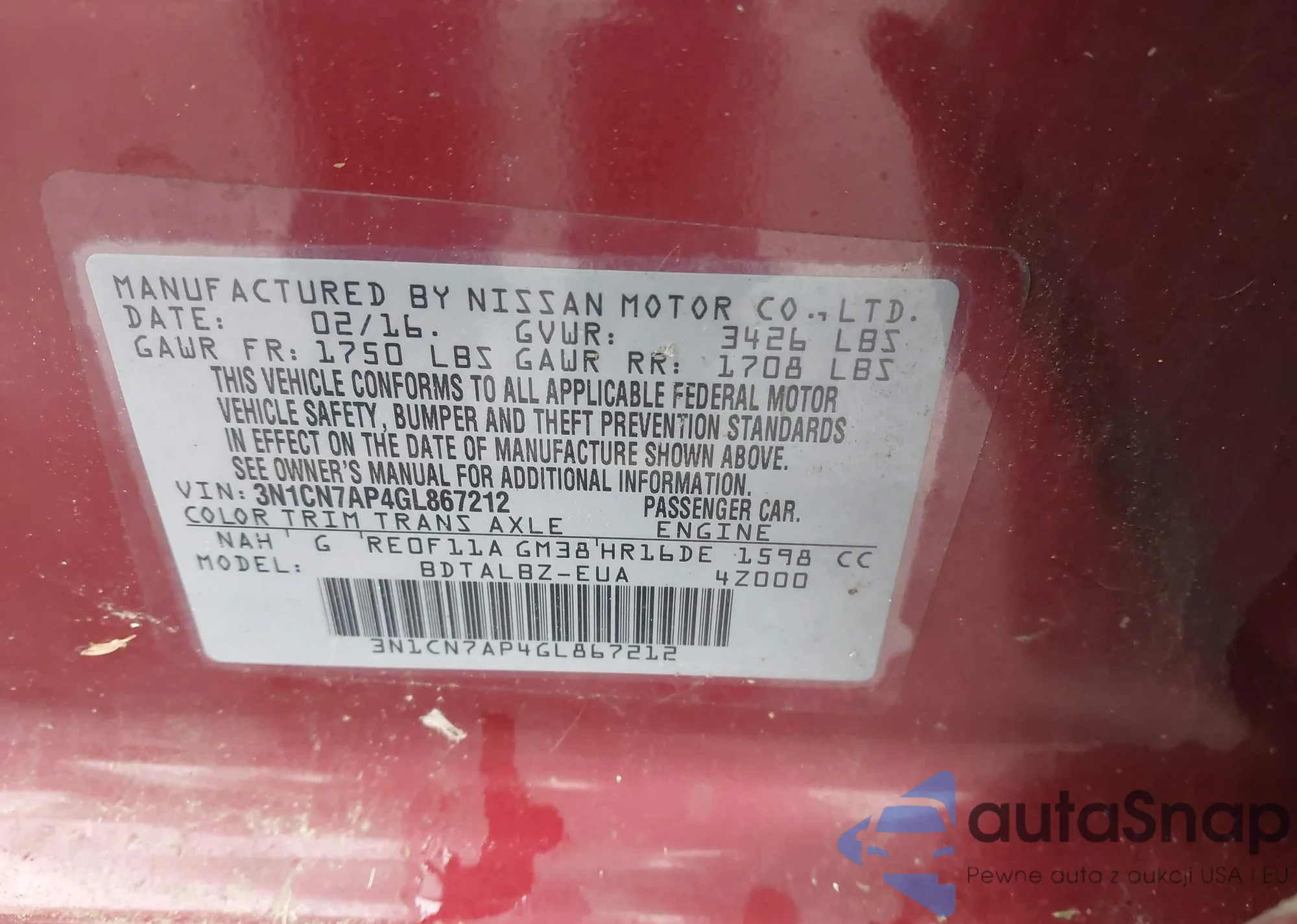 VIN: 3N1CN7AP4GL867212