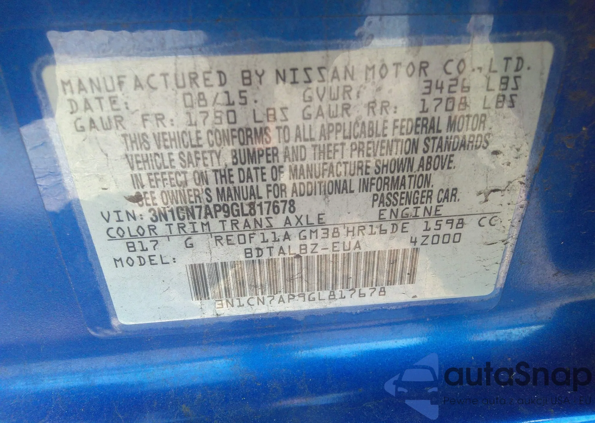 VIN: 3N1CN7AP9GL817678