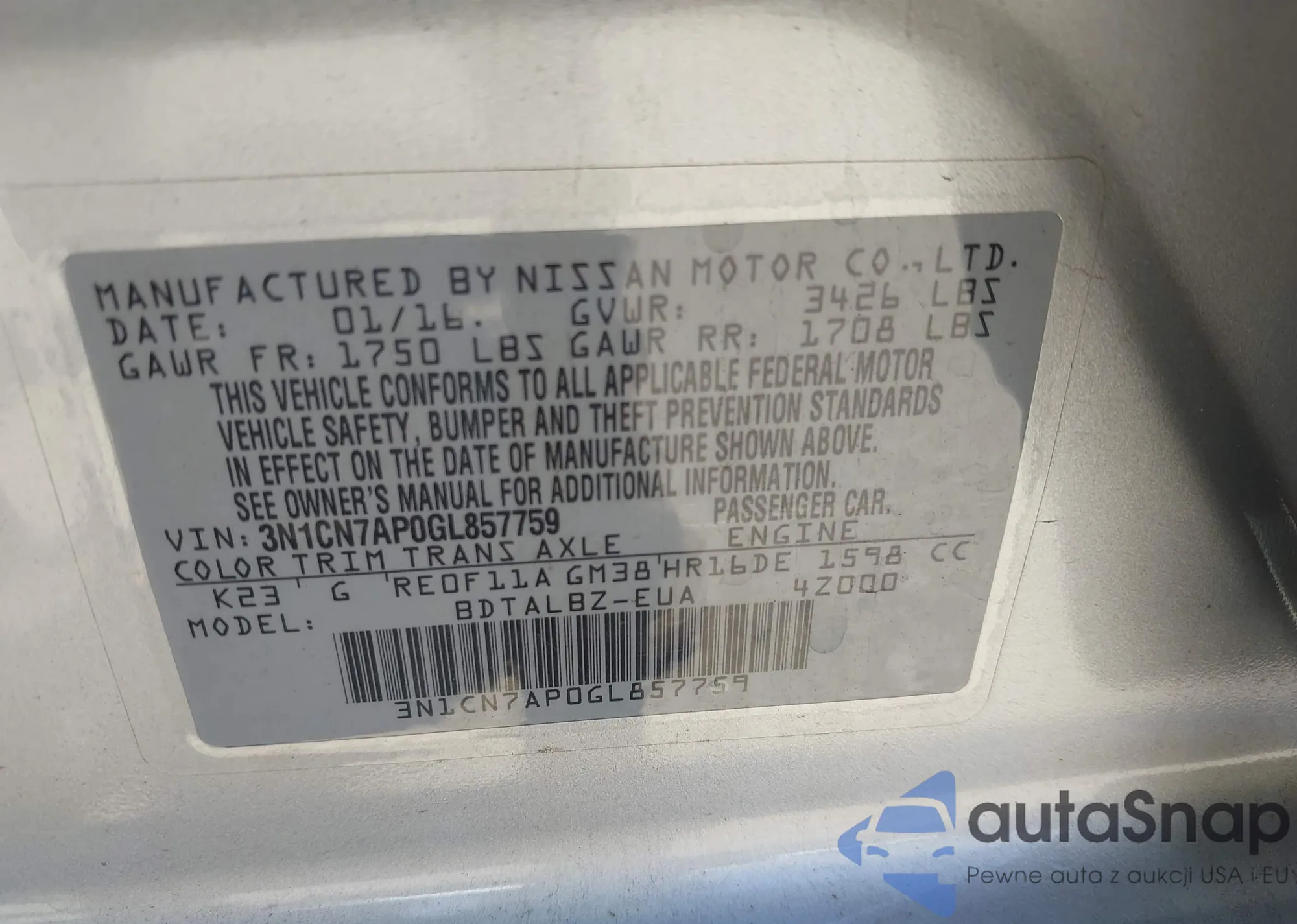 VIN: 3N1CN7AP0GL857759