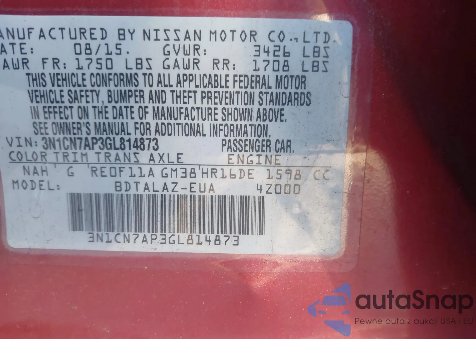 VIN: 3N1CN7AP3GL814873
