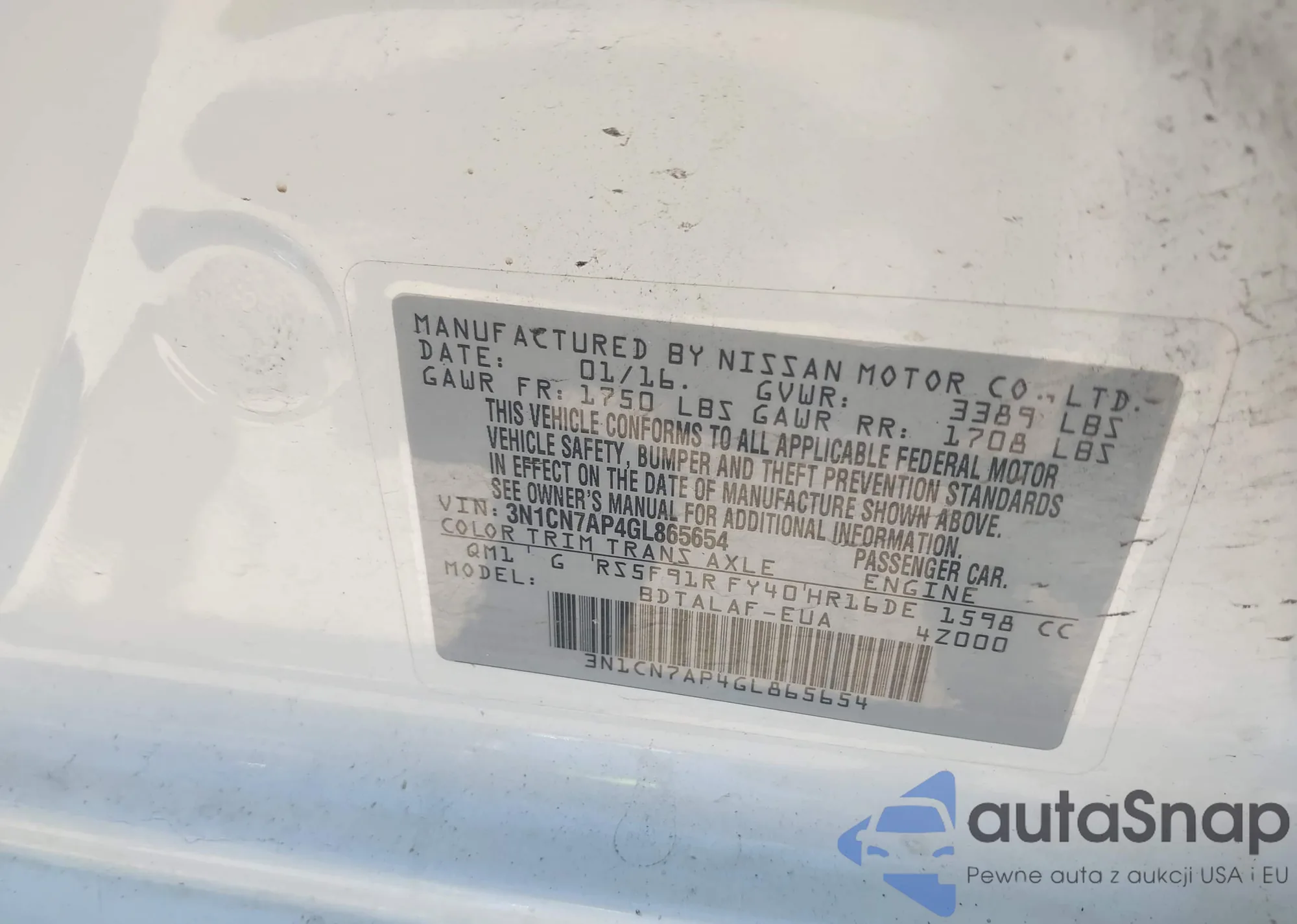 VIN: 3N1CN7AP4GL865654