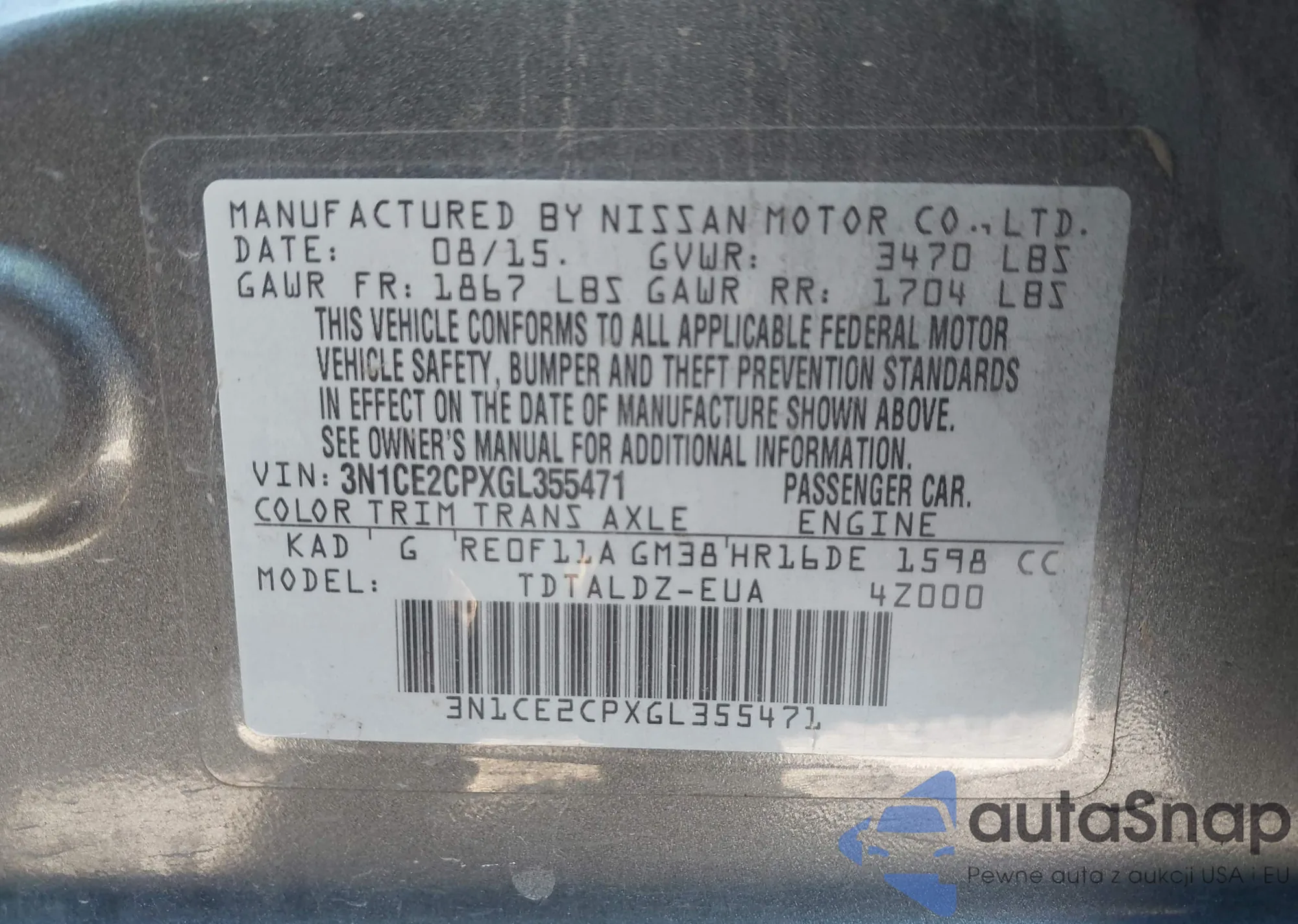 VIN: 3N1CE2CPXGL355471