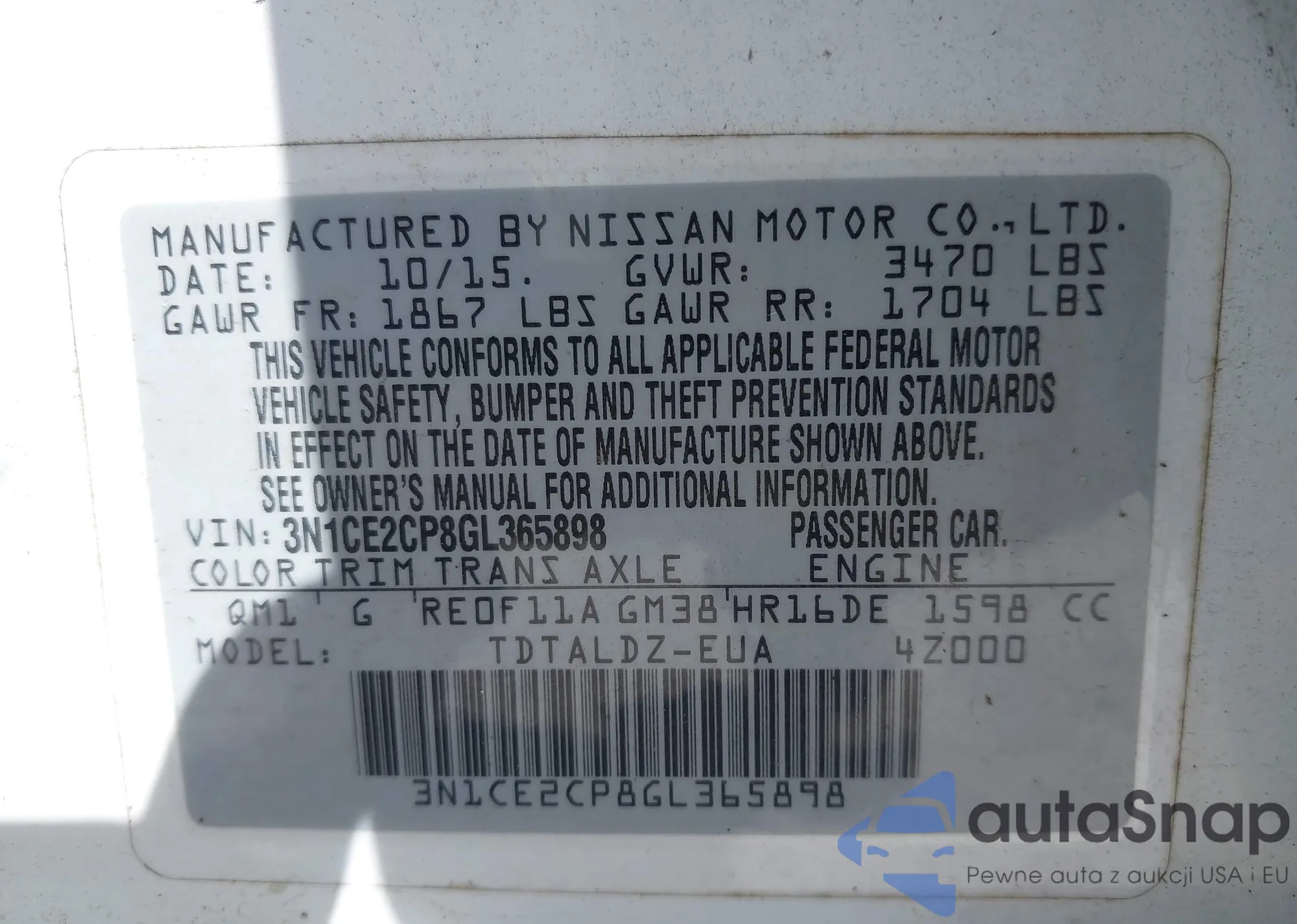 VIN: 3N1CE2CP8GL365898