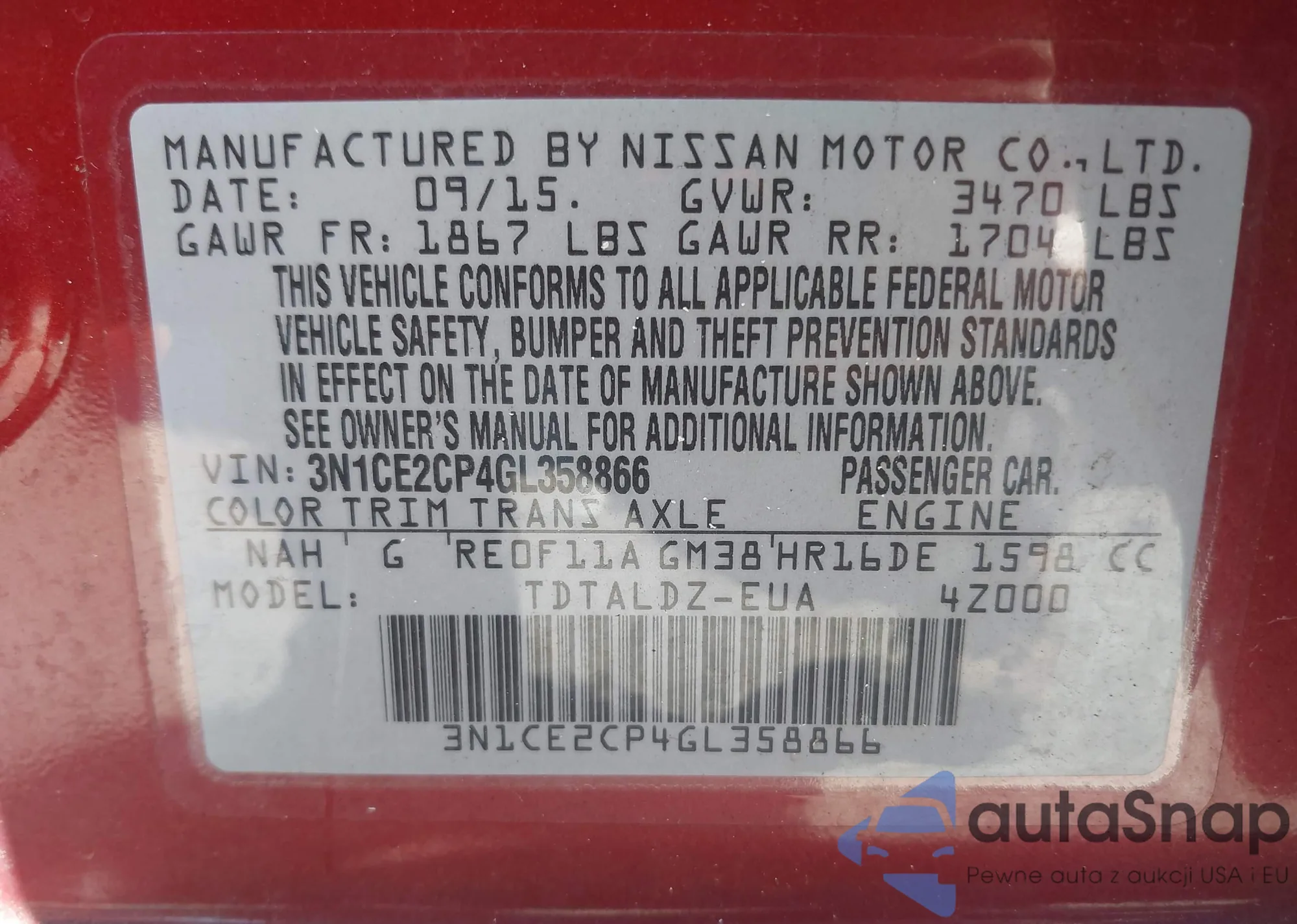 VIN: 3N1CE2CP4GL358866