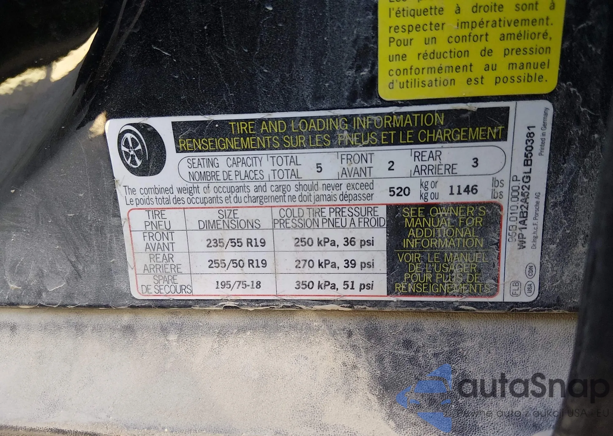 • VIN: WP1AB2A52GLB50381