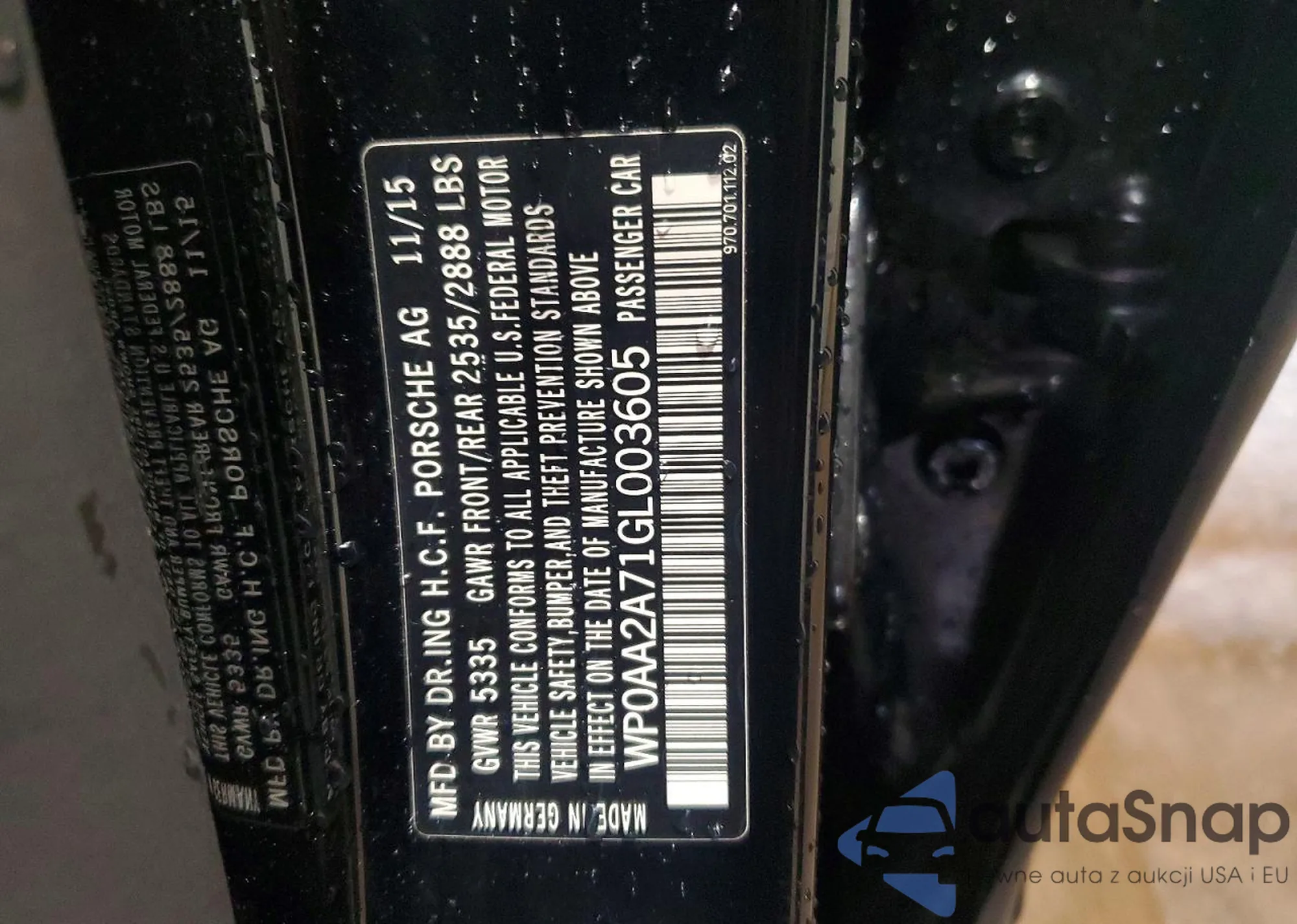 The car Porsche Panamera 2016 (VIN WP0AA2A71GL003605) is sold by an unverified seller. We recommend checking the Carfax report and confirming registration possibilities before purchase.