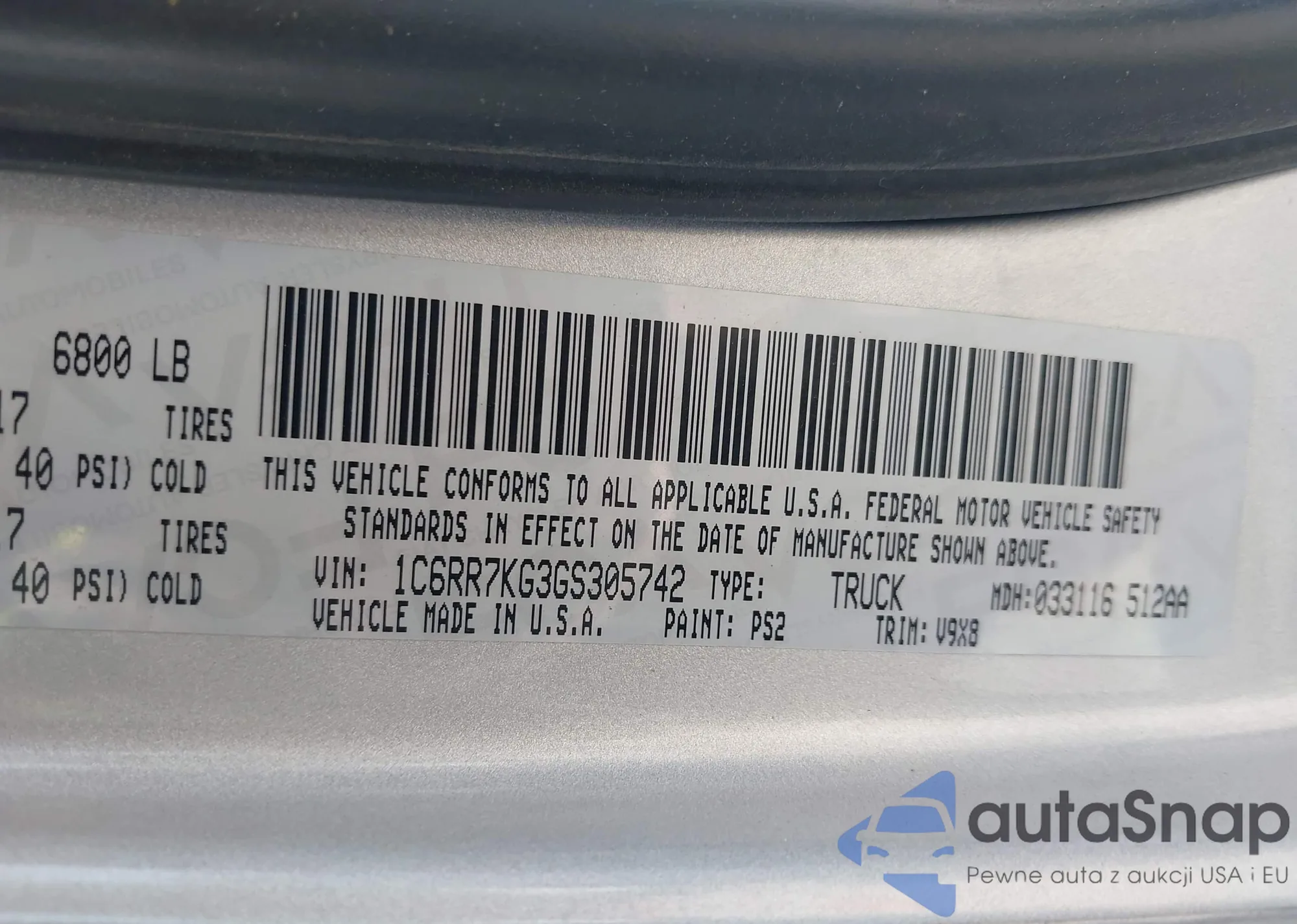 VIN: 1C6RR7KG3GS305742