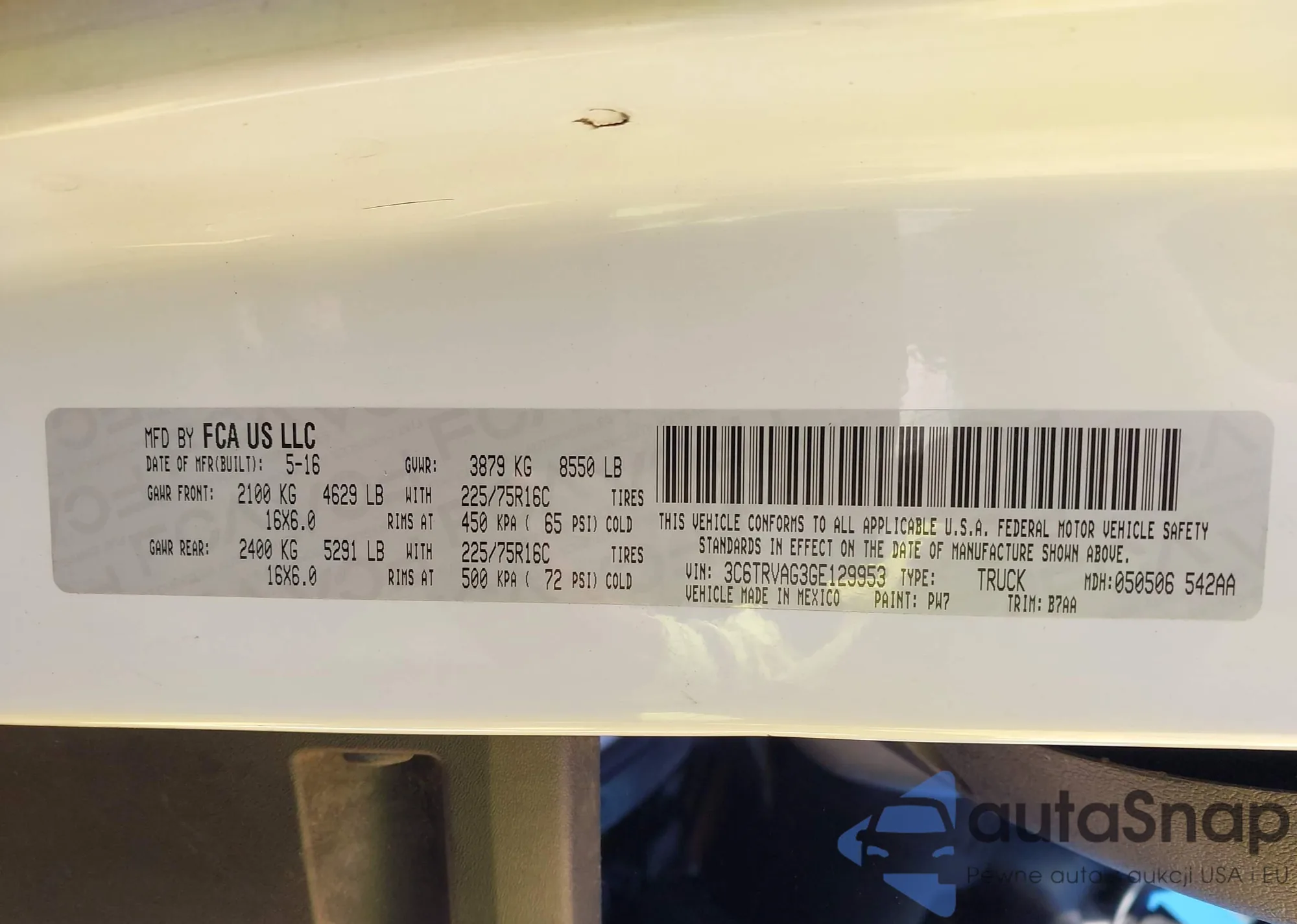 VIN: 3C6TRVAG3GE129953
