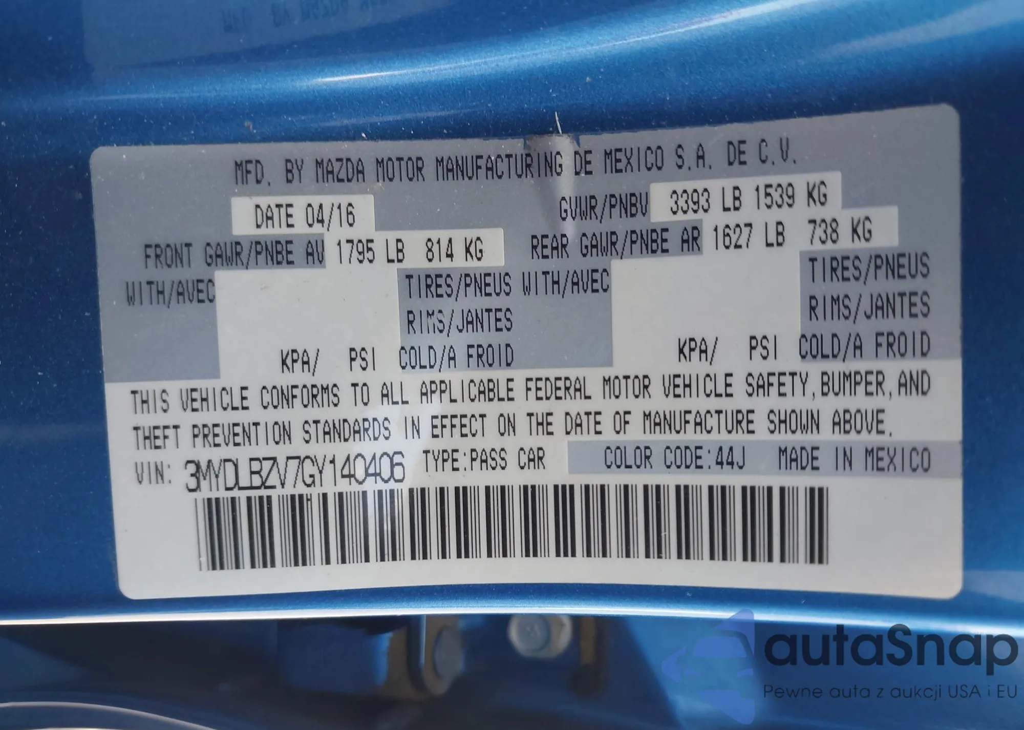 VIN: 3MYDLBZV7GY140406