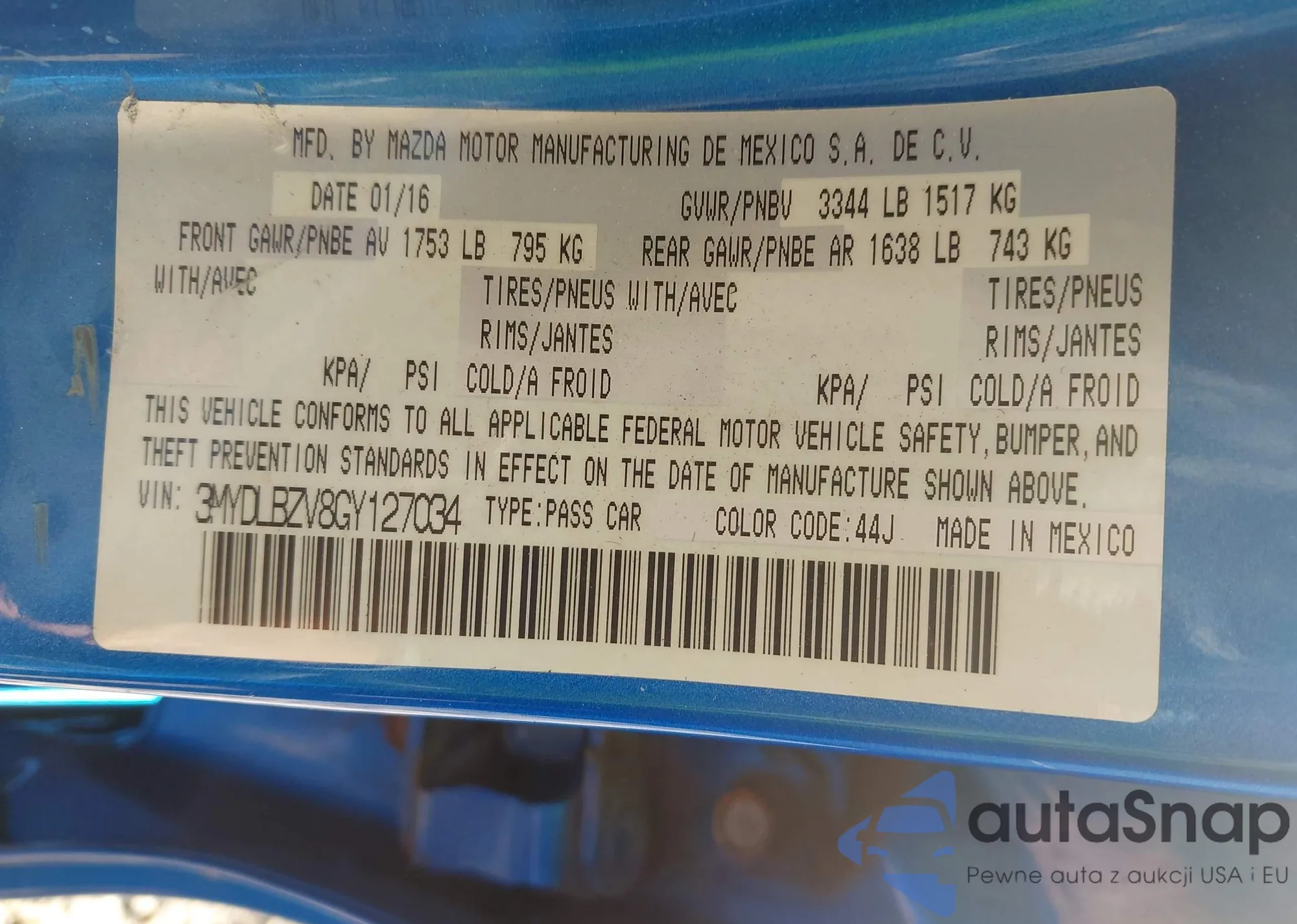 The car Scion iA 2016 (VIN 3MYDLBZV8GY127034) has not been auctioned before. The documents are clean, and the mileage matches or is below the market average. Sold by an insurance company – we recommend purchase. Delivery to the port will take approx. 6–8 weeks.