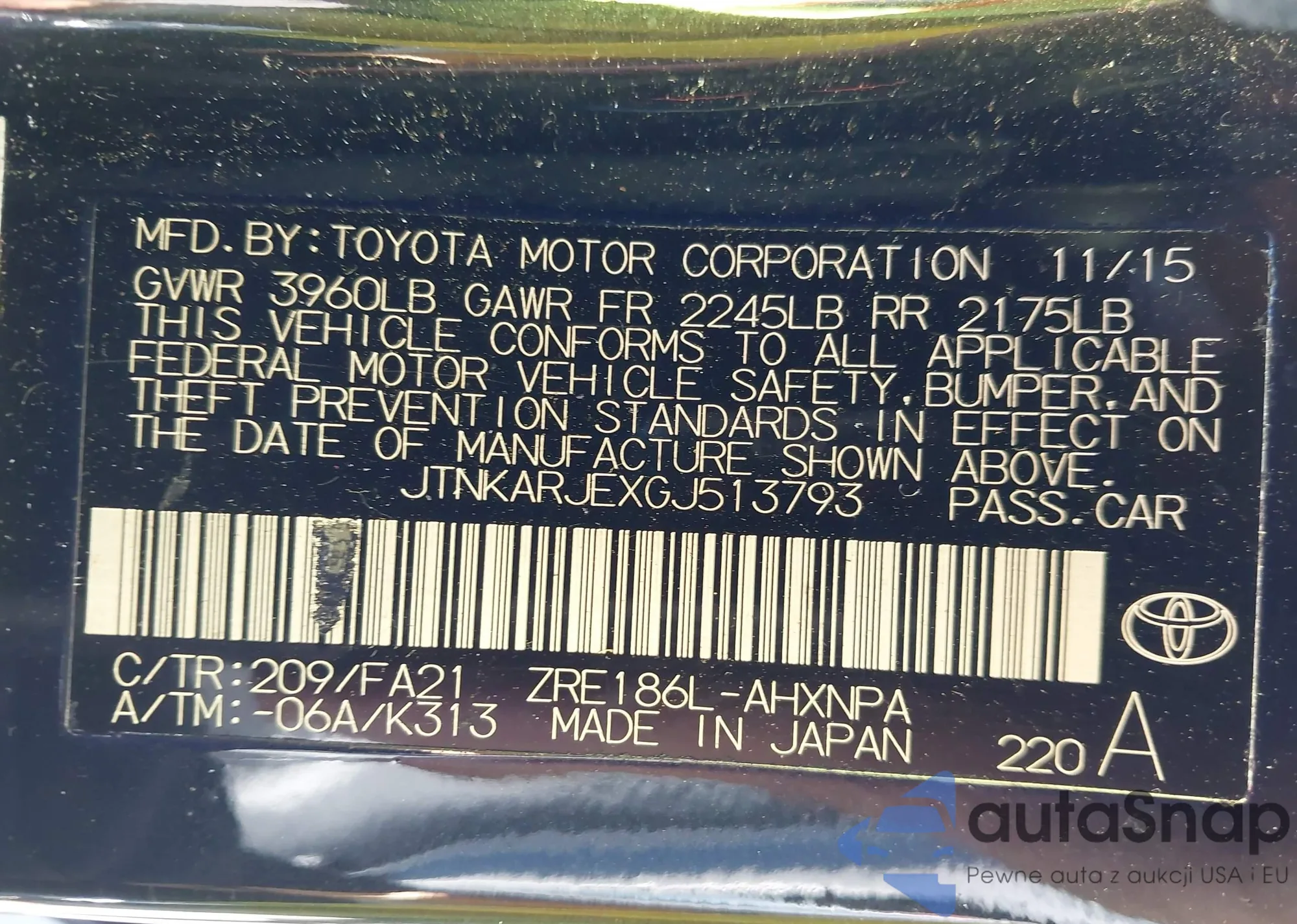 VIN: JTNKARJEXGJ513793