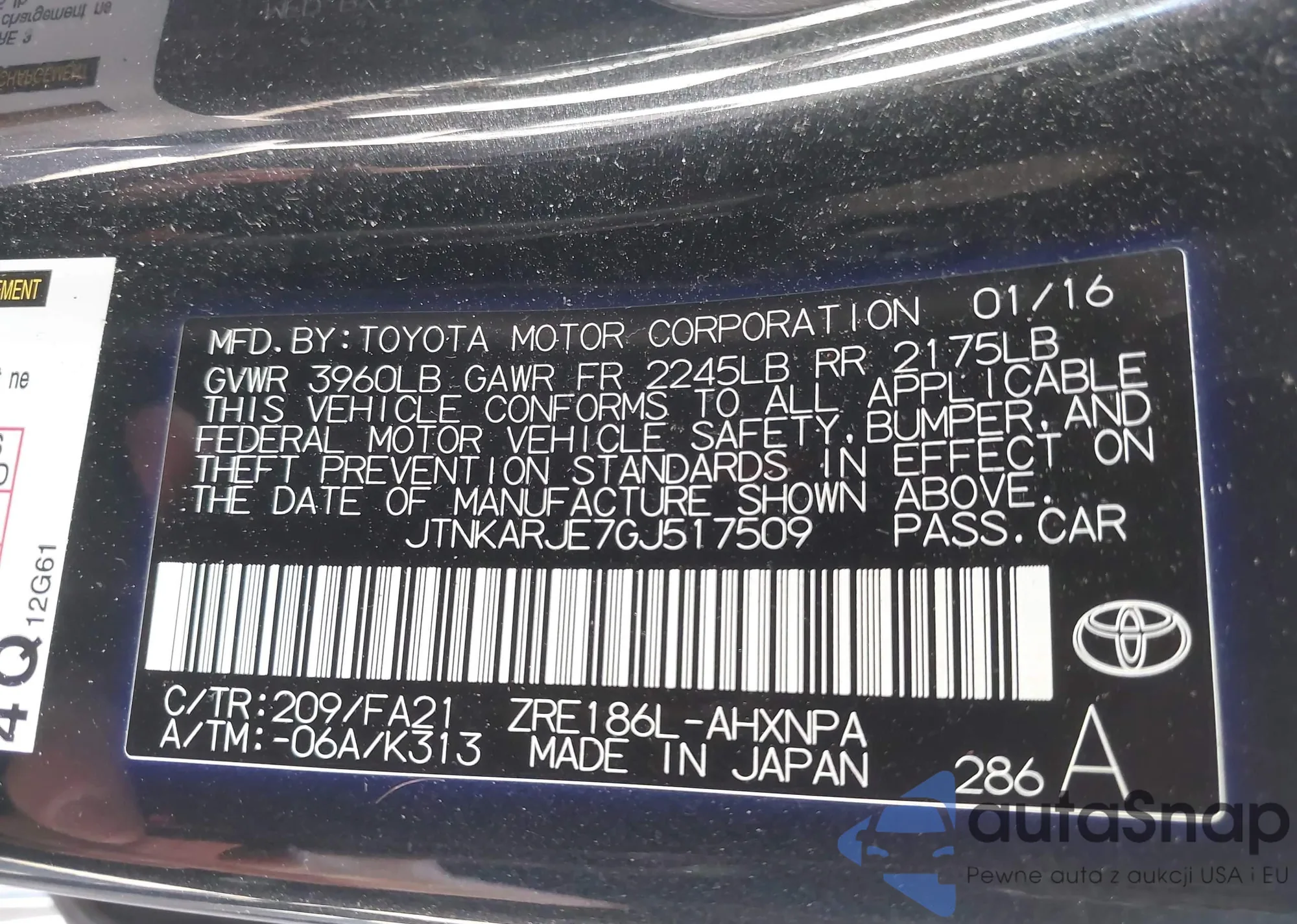 The car Scion iM 2016 (VIN JTNKARJE7GJ517509) has not been auctioned before. The documents are clean, and the mileage matches or is below the market average. Sold by an insurance company – we recommend purchase. Delivery to the port will take approx. 6–8 weeks.