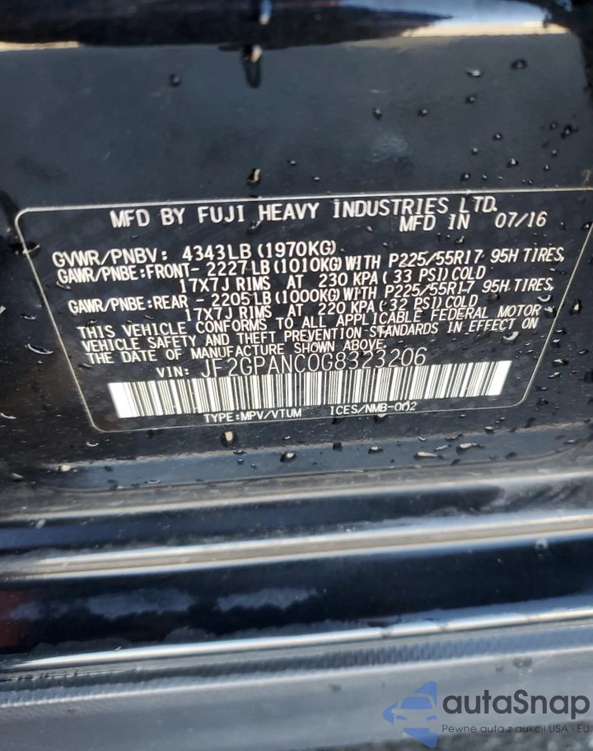 VIN: JF2GPANC0G8323206