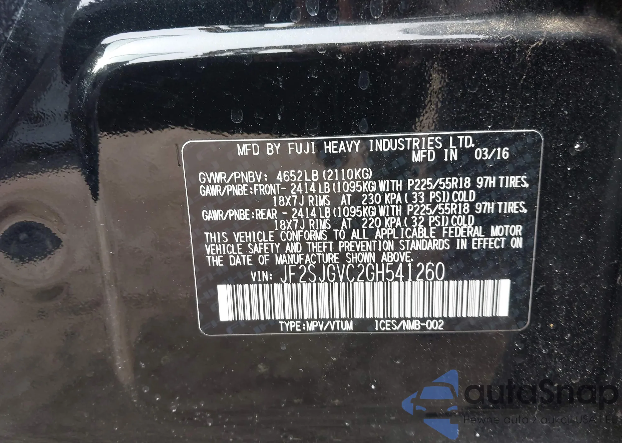 VIN: JF2SJGVC2GH541260