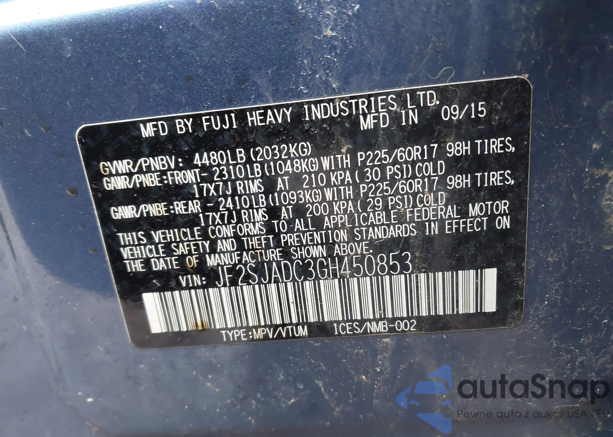 The car Subaru Forester 2016 (VIN JF2SJADC3GH450853) has not been auctioned before. The documents are clean, and the mileage matches or is below the market average. Sold by an insurance company – we recommend purchase. Delivery to the port will take approx. 6–8 weeks.