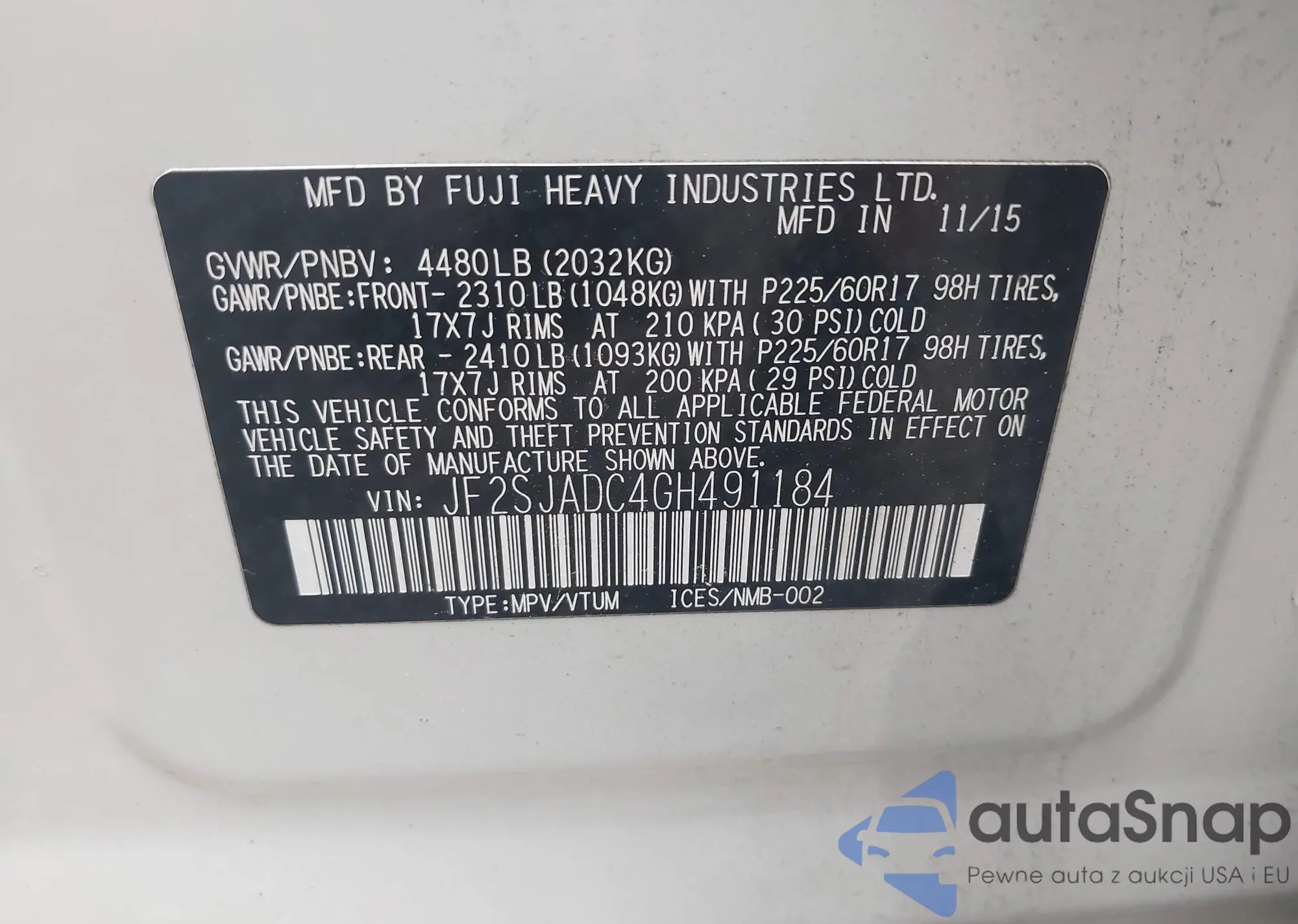 VIN: JF2SJADC4GH491184