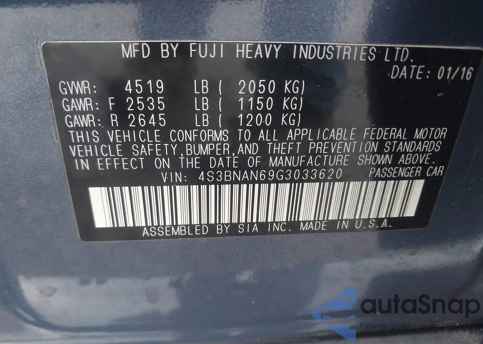 VIN: 4S3BNAN69G3033620