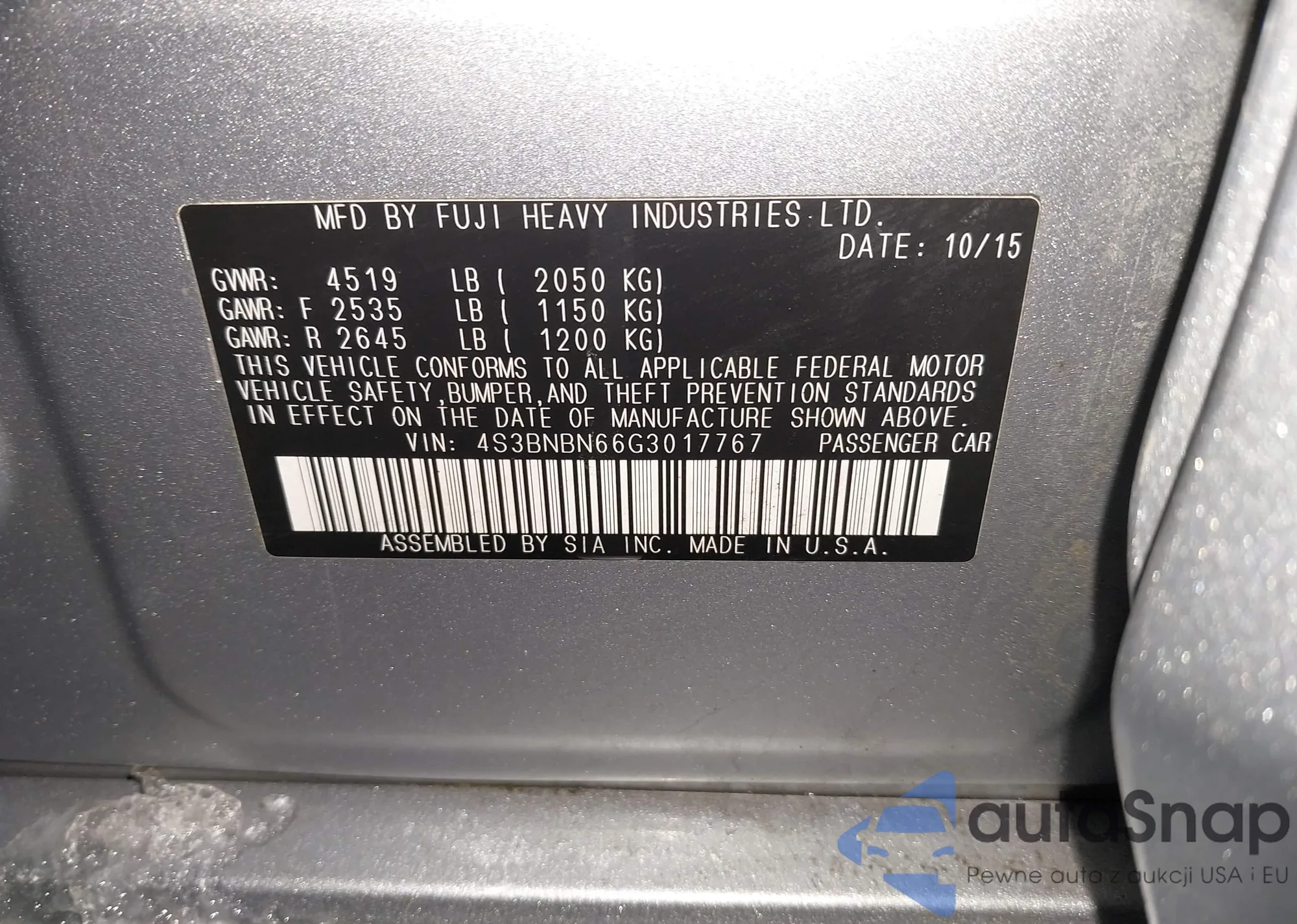 VIN: 4S3BNBN66G3017767