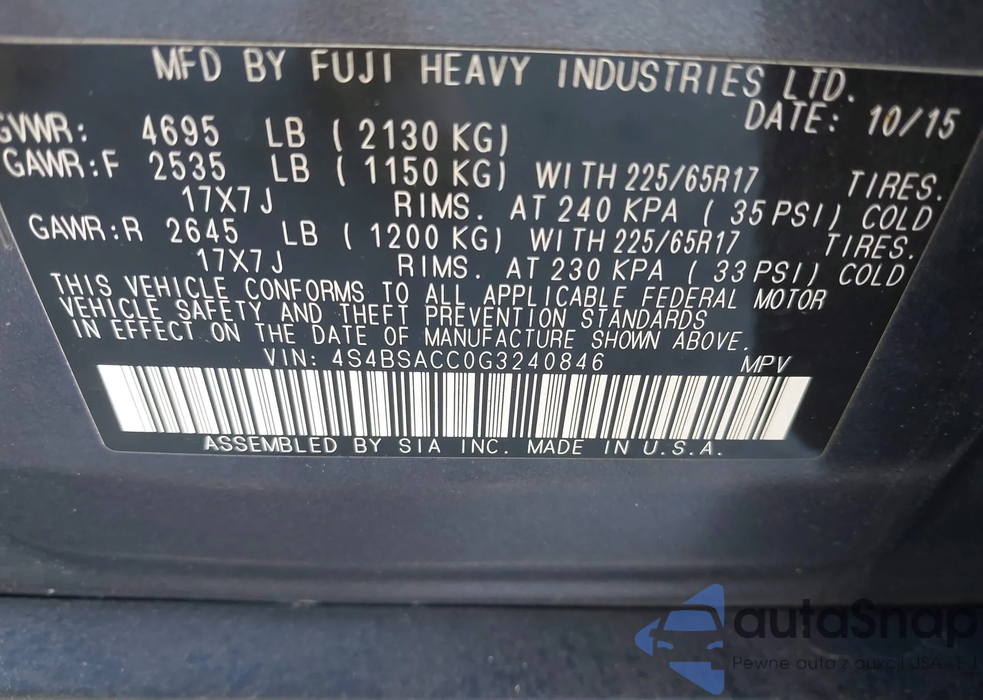 VIN: 4S4BSACC0G3240846