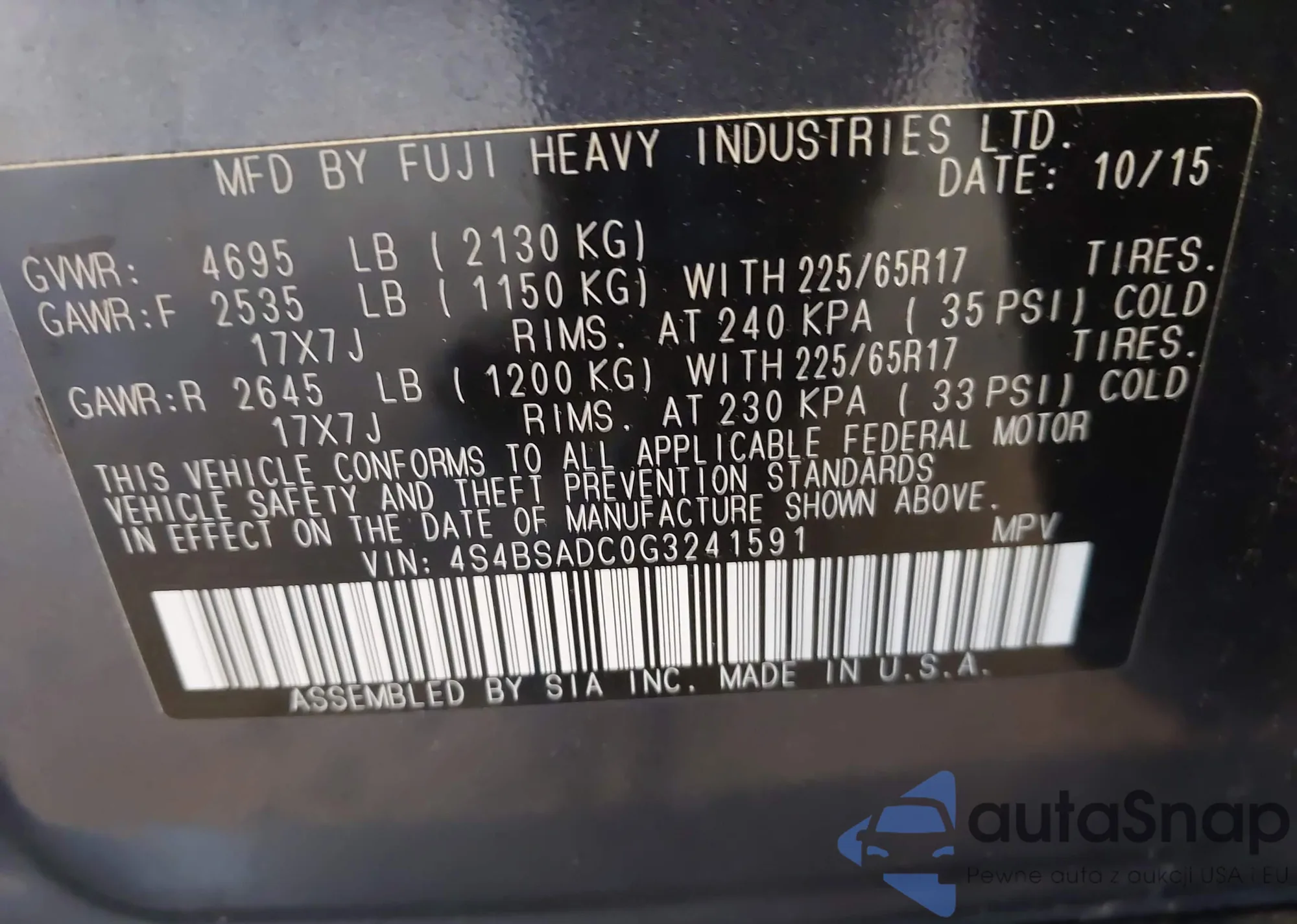 • VIN: 4S4BSADC0G3241591