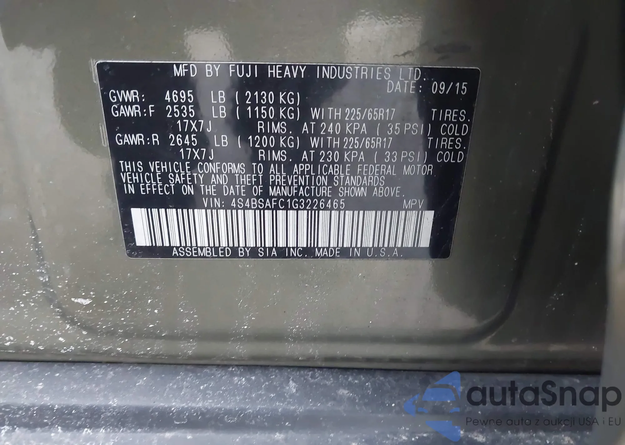 VIN: 4S4BSAFC1G3226465