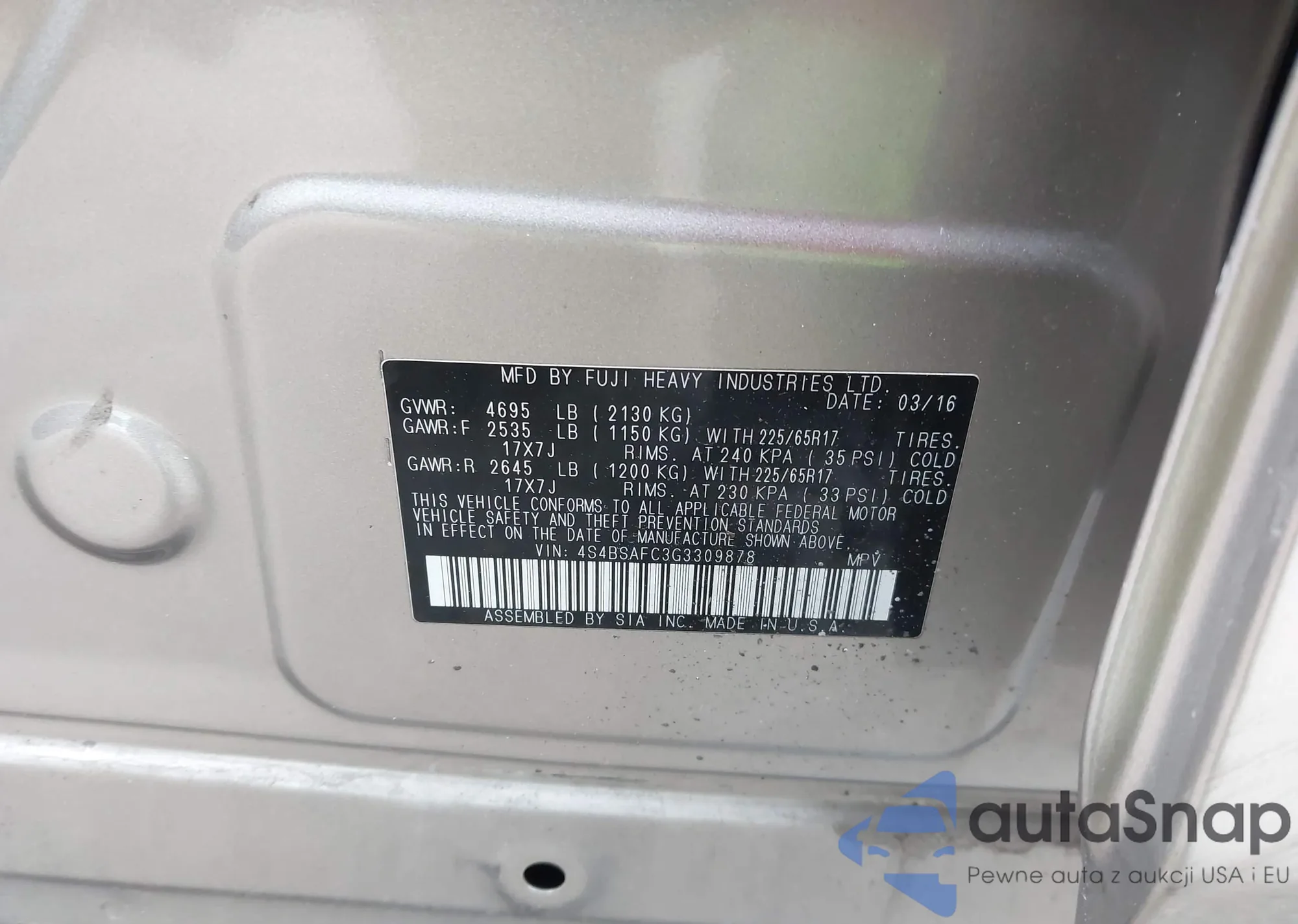 VIN: 4S4BSAFC3G3309878