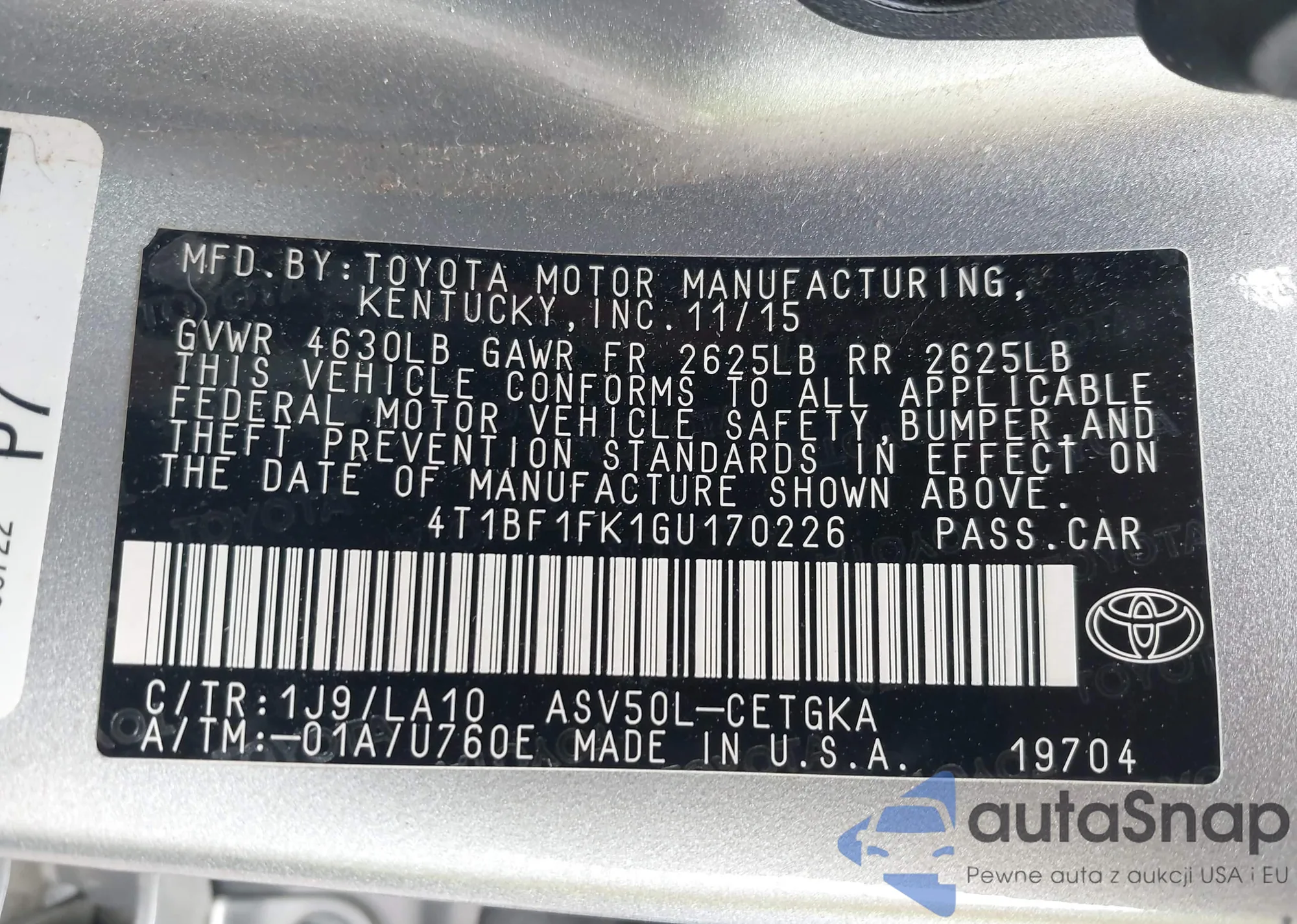 VIN: 4T1BF1FK1GU170226