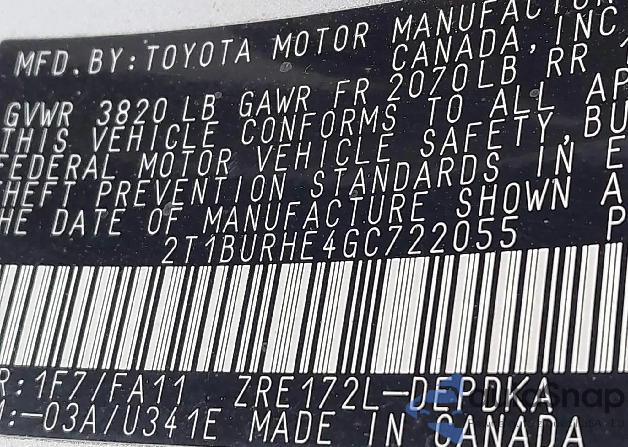 VIN: 2T1BURHE4GC722055