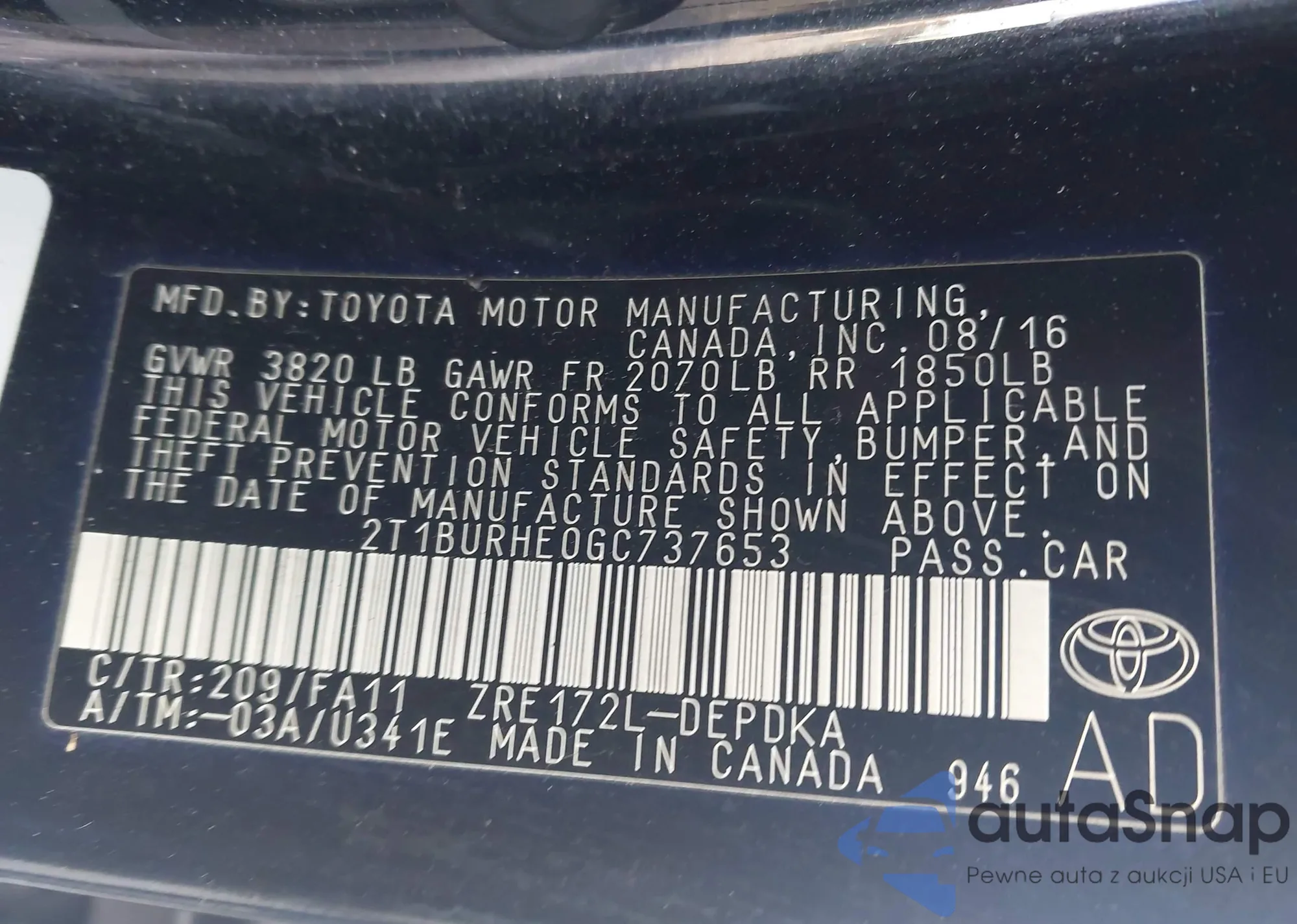 VIN: 2T1BURHE0GC737653