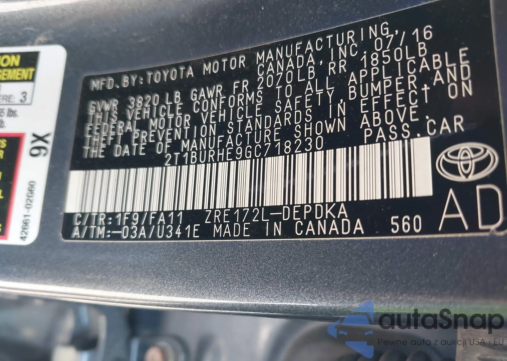 VIN: 2T1BURHE9GC718230