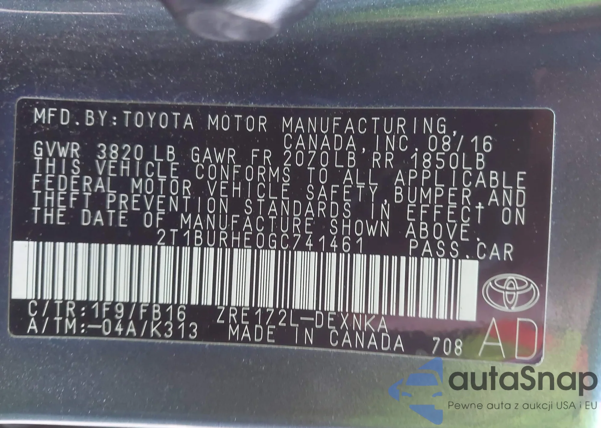 The car Toyota Corolla 2016 (VIN 2T1BURHE0GC741461) has not been auctioned before. The documents are clean, and the mileage matches or is below the market average. Sold by an insurance company – we recommend purchase. Delivery to the port will take approx. 6–8 weeks.