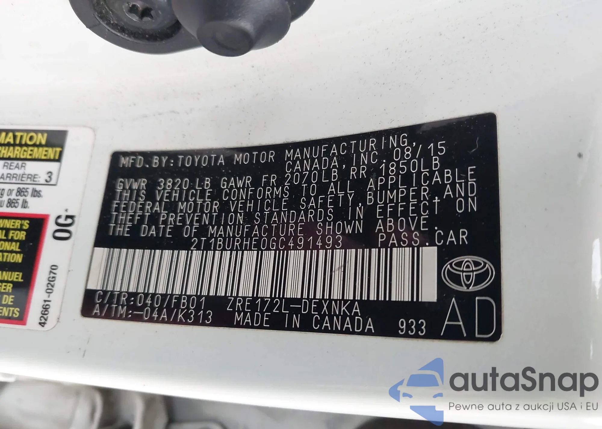 VIN: 2T1BURHE0GC491493