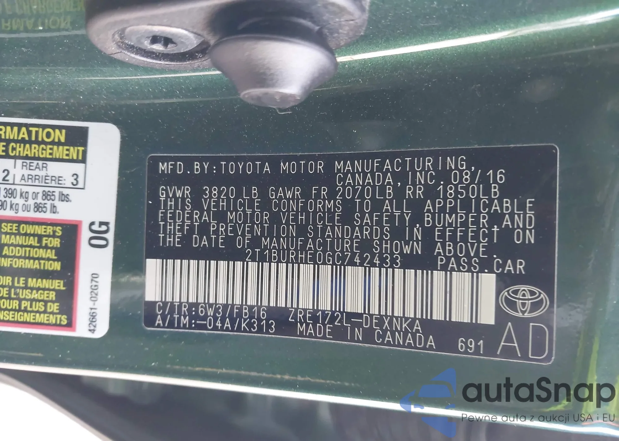VIN: 2T1BURHE0GC742433