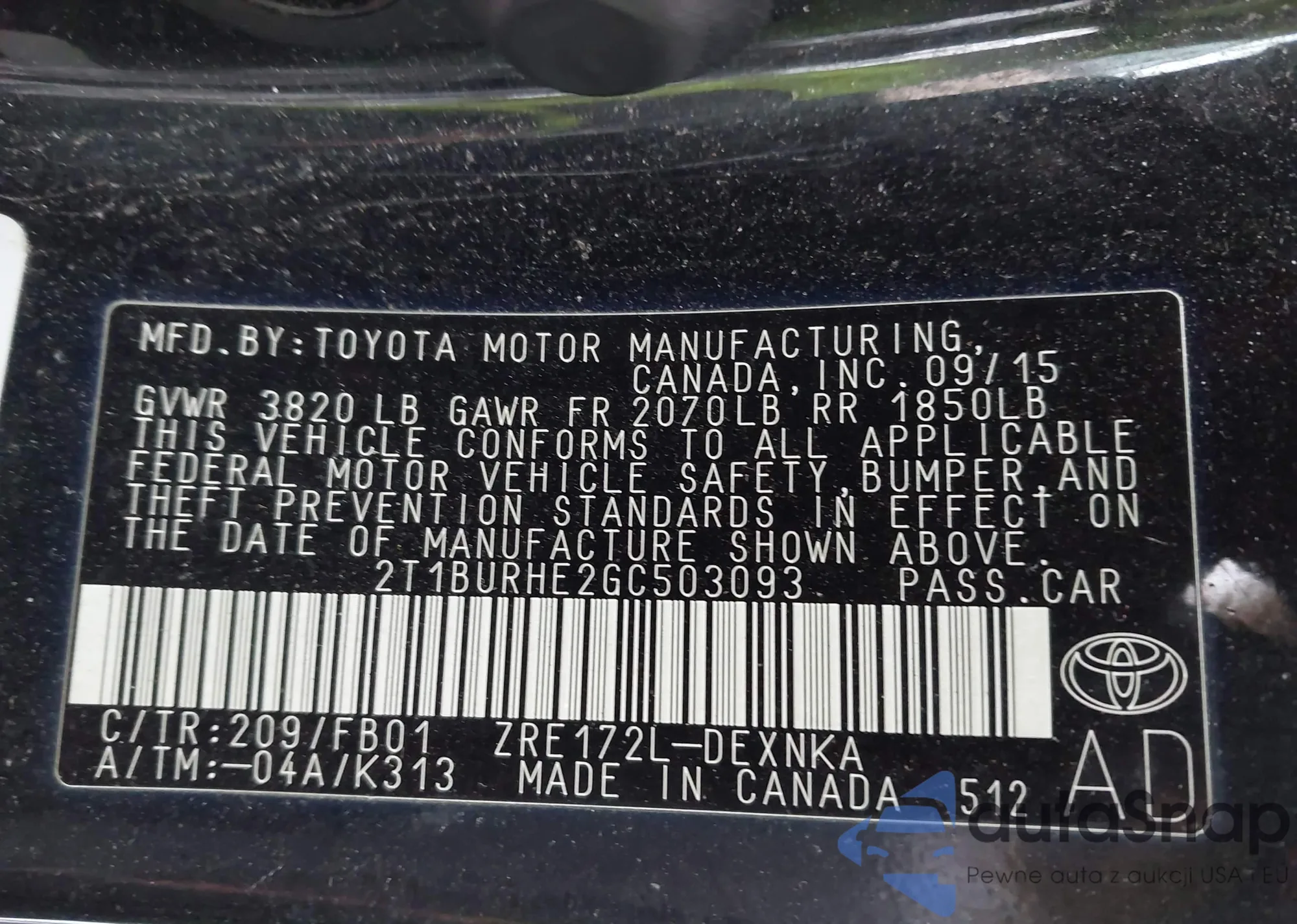 The car Toyota Corolla 2016 (VIN 2T1BURHE2GC503093) is sold by an unverified seller. We recommend checking the Carfax report and confirming registration possibilities before purchase.