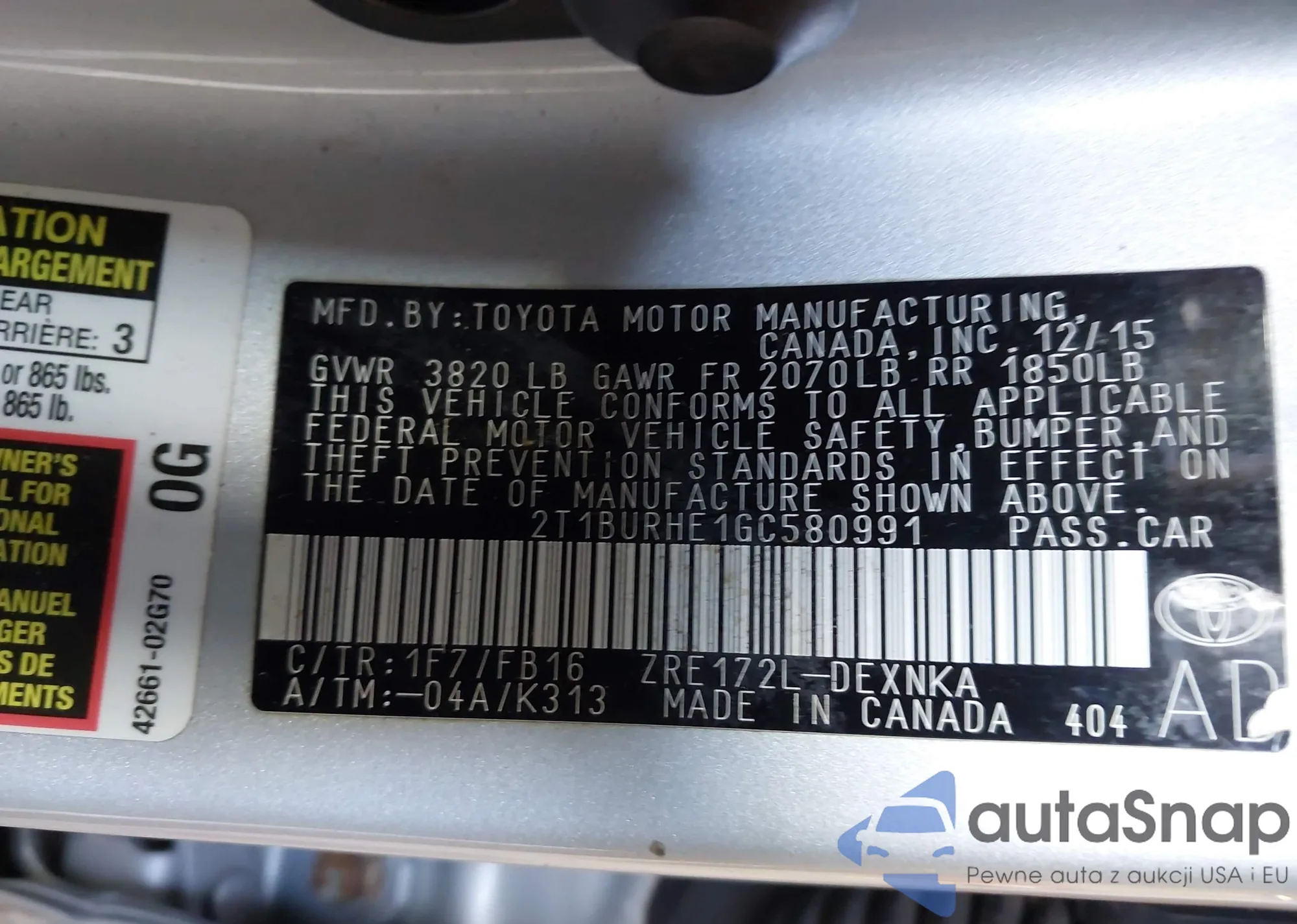 • VIN: 2T1BURHE1GC580991