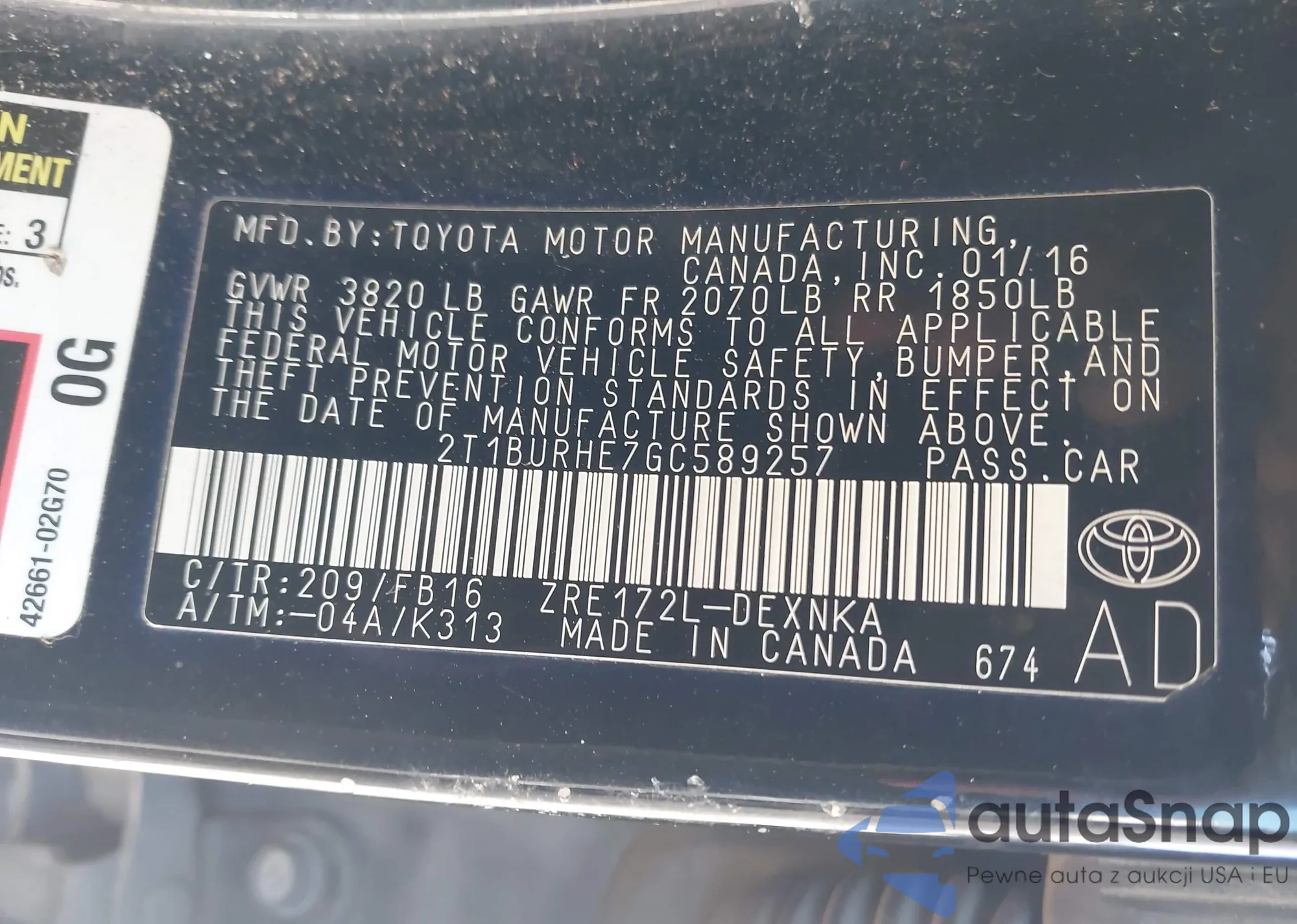 VIN: 2T1BURHE7GC589257