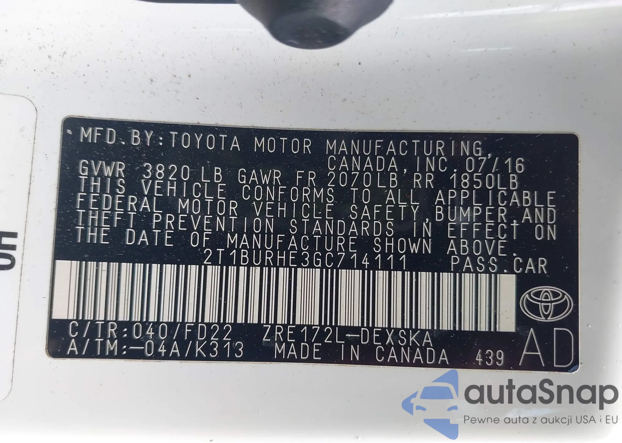 VIN: 2T1BURHE3GC714111
