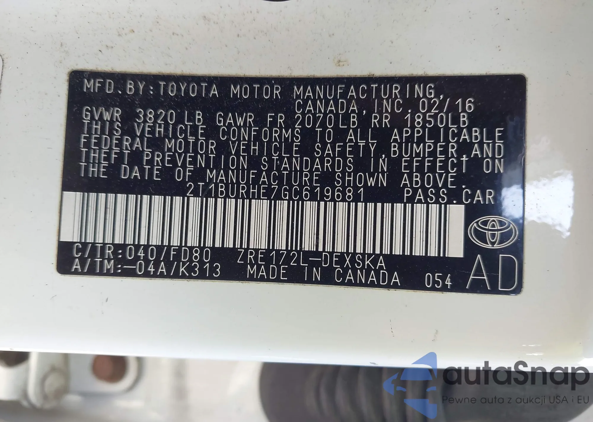 VIN: 2T1BURHE7GC619681