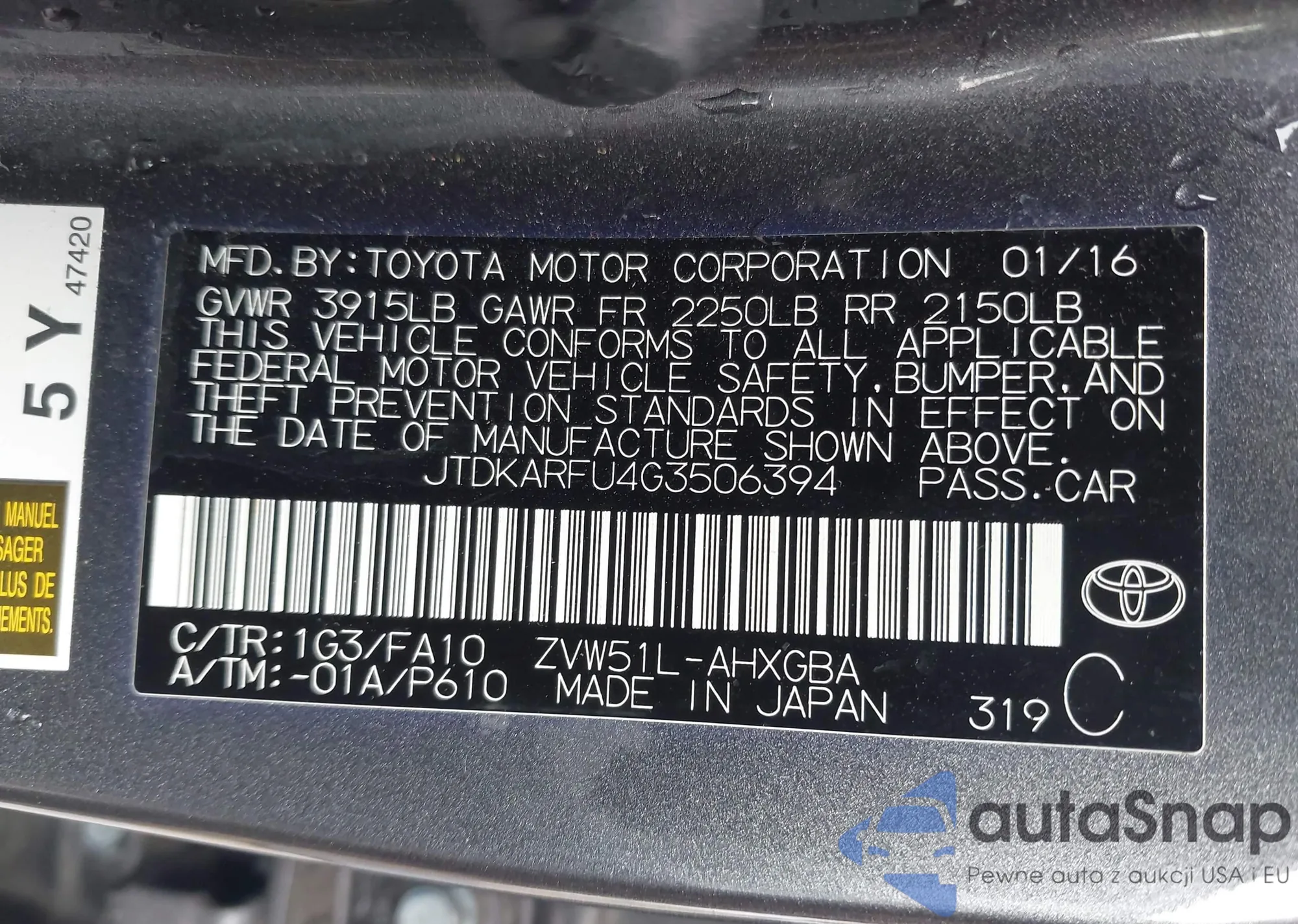 VIN: JTDKARFU4G3506394