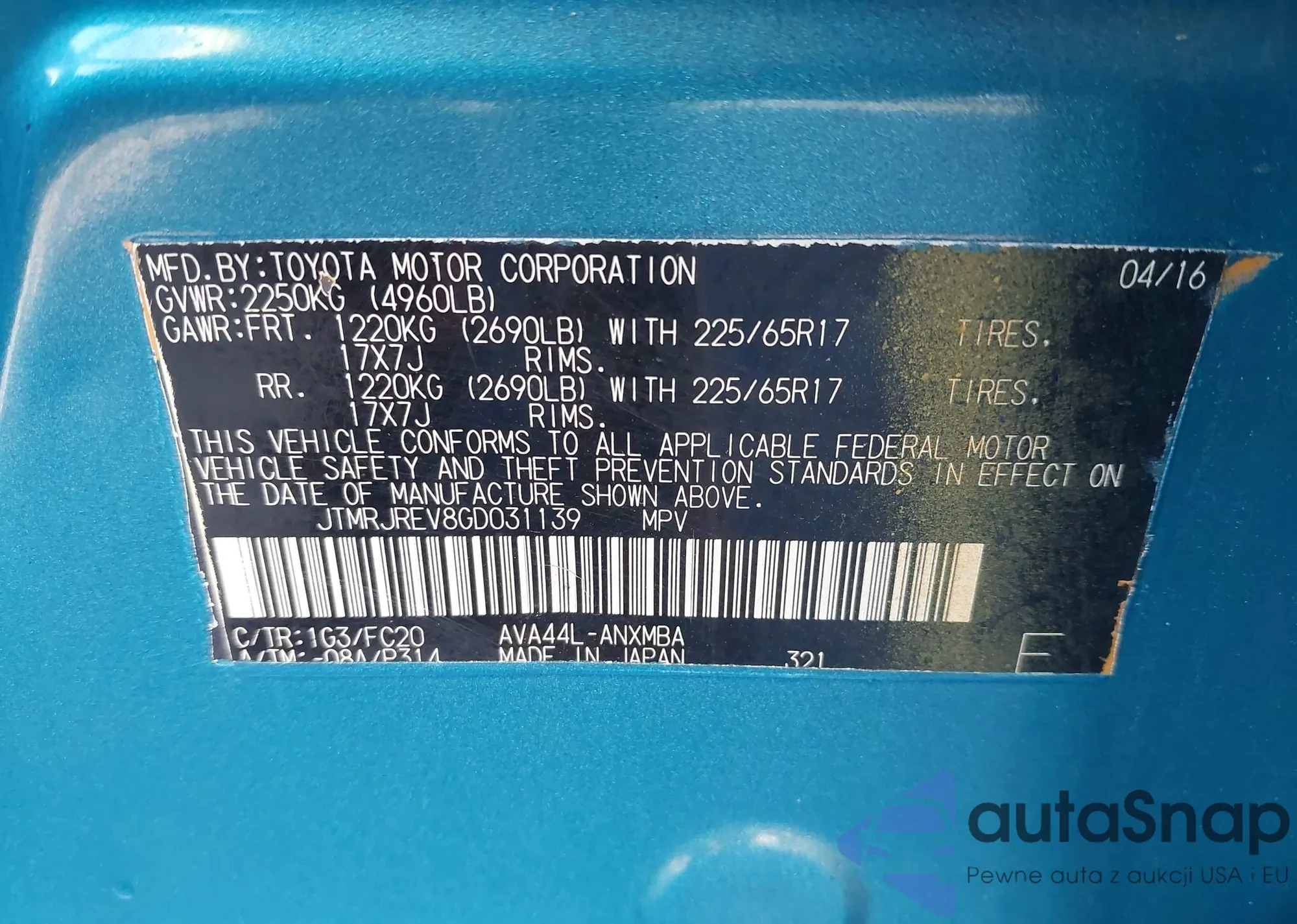 VIN: JTMRJREV8GD031139