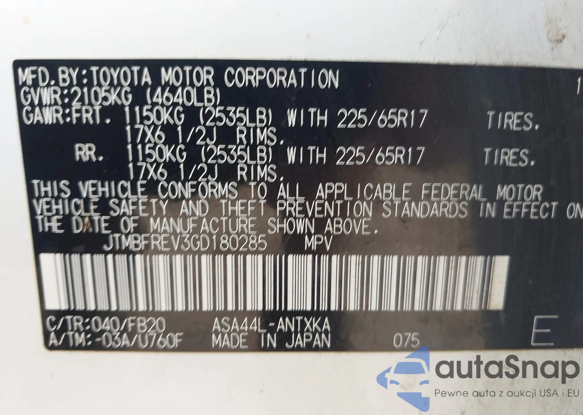 VIN: JTMBFREV3GD180285