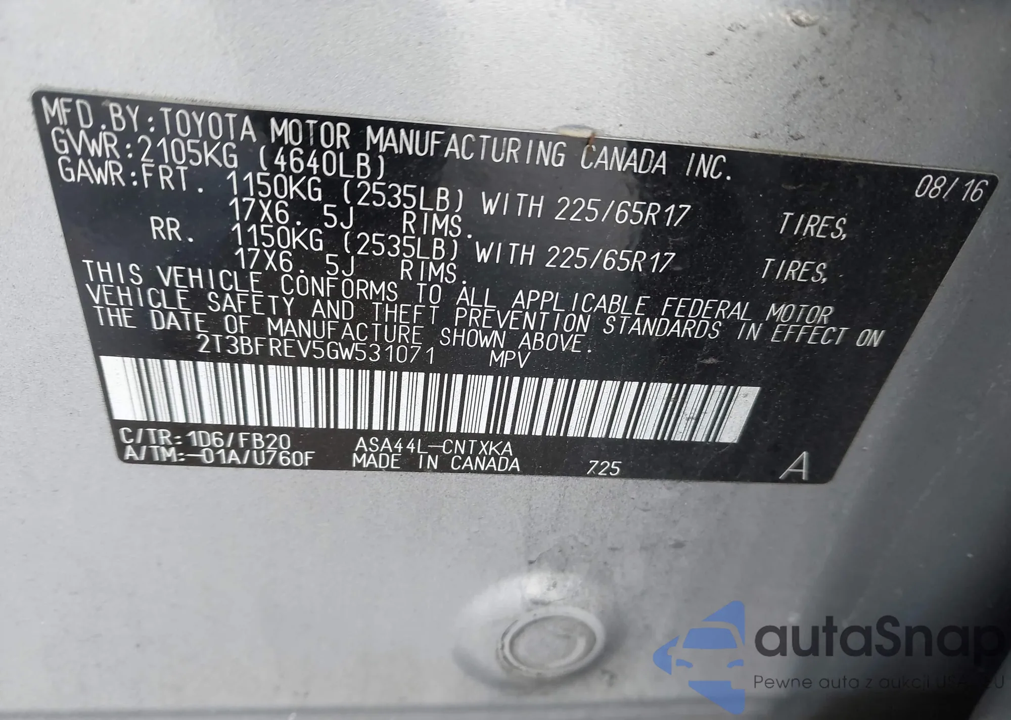 VIN: 2T3BFREV5GW531071