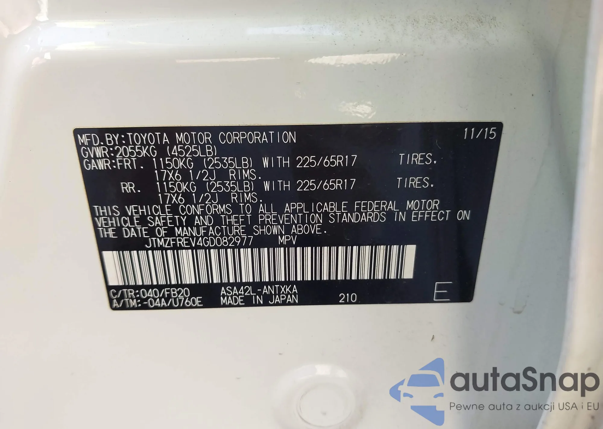 VIN: JTMZFREV4GD082977