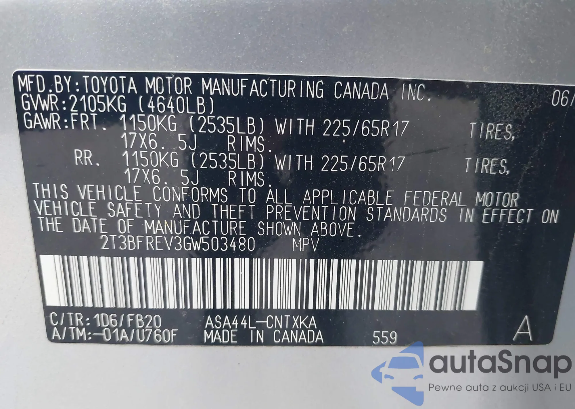 VIN: 2T3BFREV3GW503480