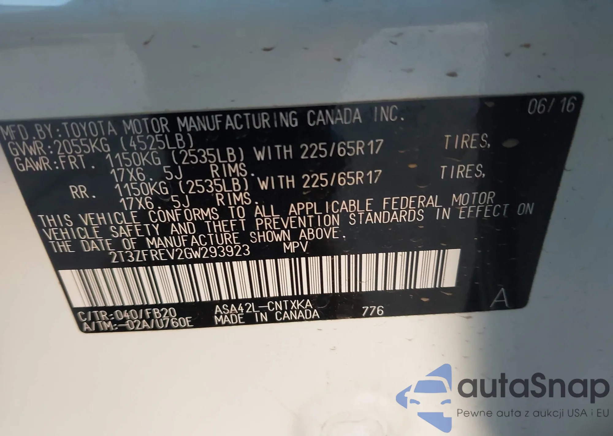 • VIN: 2T3ZFREV2GW293923