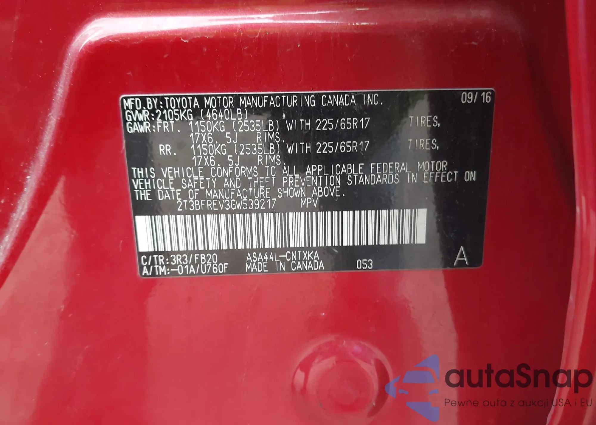 VIN: 2T3BFREV3GW539217