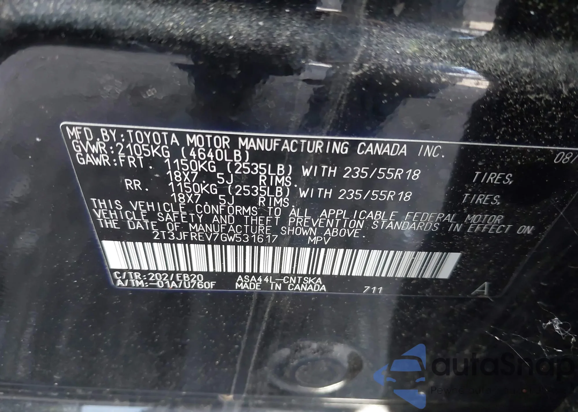 VIN: 2T3JFREV7GW531617