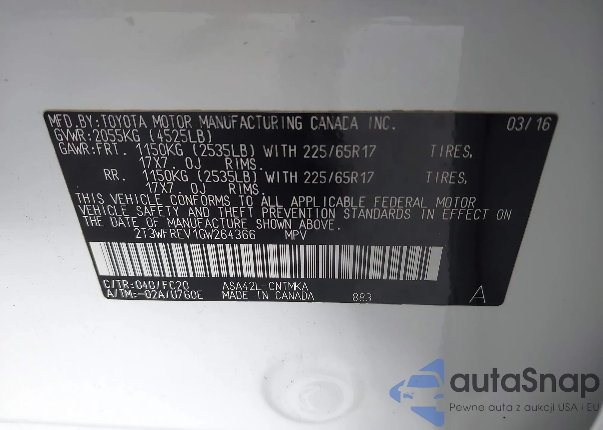 VIN: 2T3WFREV1GW264366