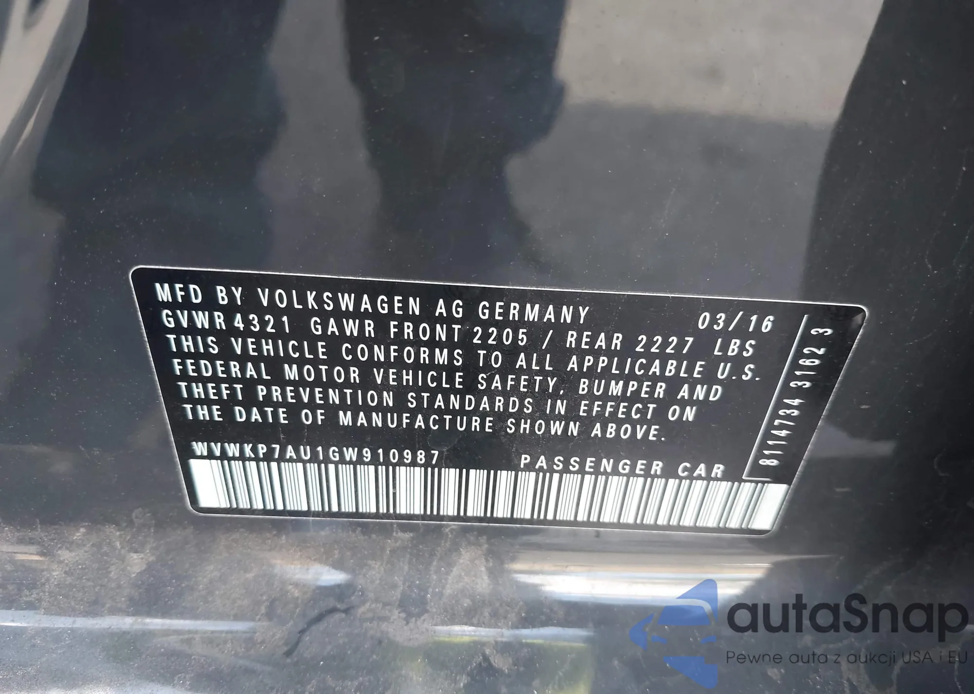 The car Volkswagen e Golf 2016 (VIN WVWKP7AU1GW910987) is sold by an unverified seller. We recommend checking the Carfax report and confirming registration possibilities before purchase.